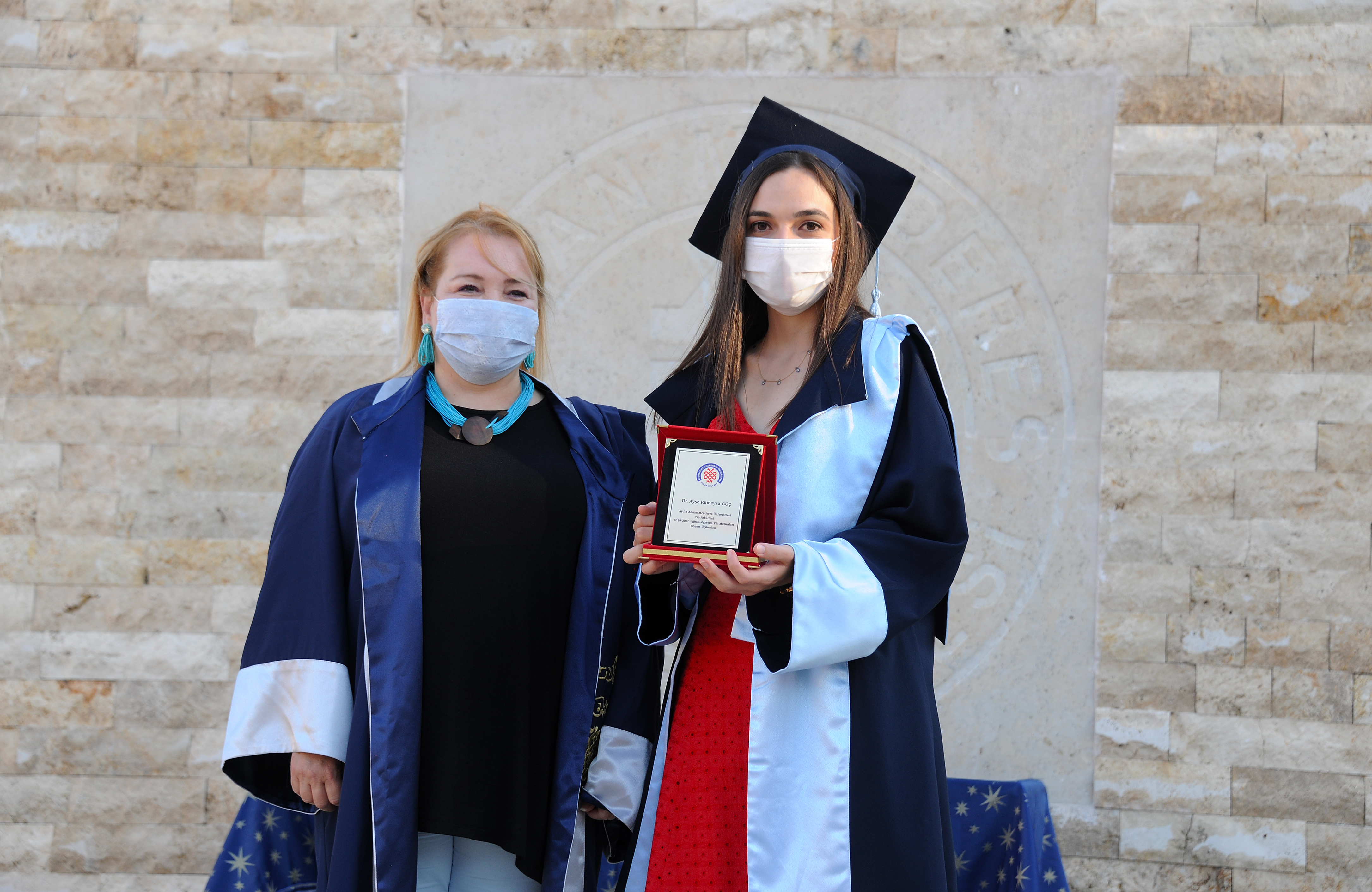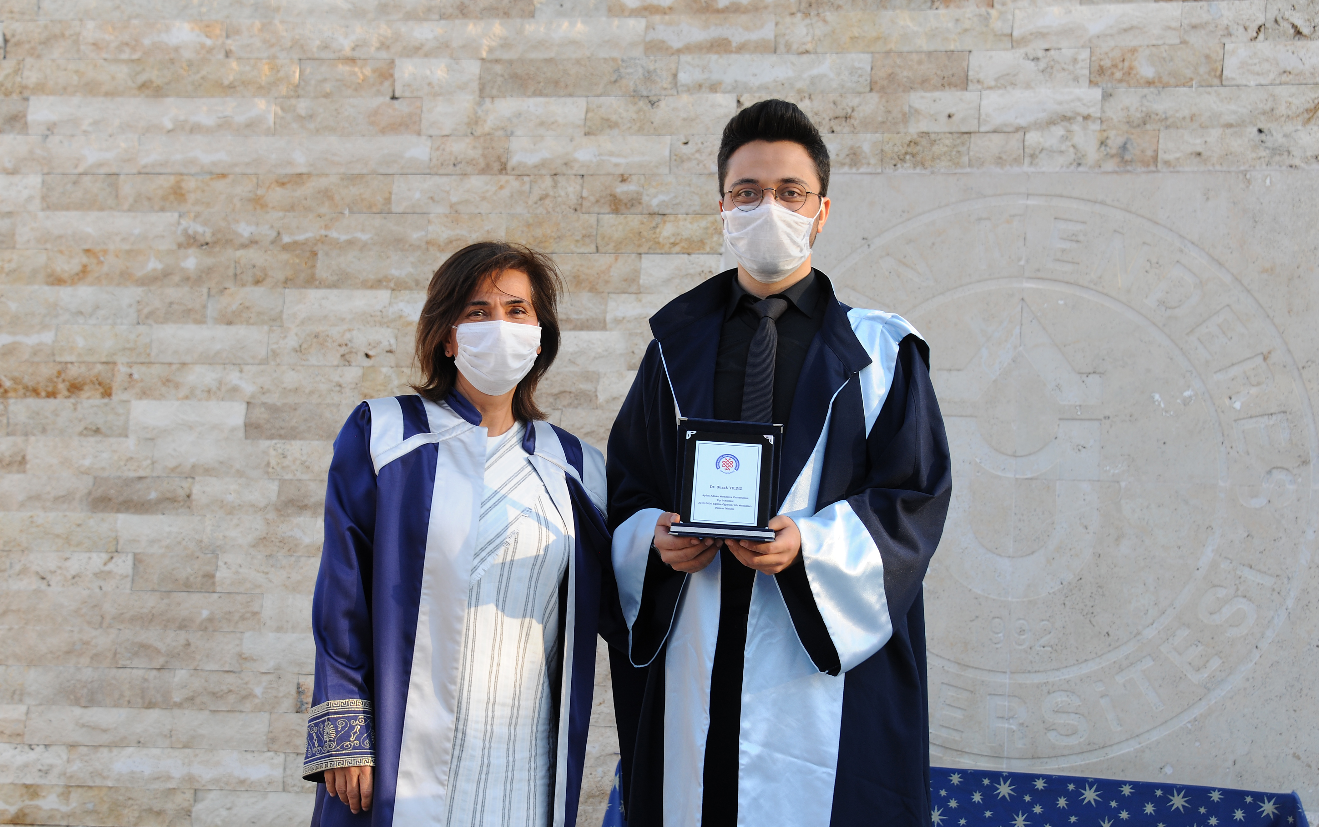 Doktor Berk Mutlu, birincilik plaketini Rektör Yardımcısı Prof. Dr. Ali Akyol’un elinden aldı. Dönem birincisi Mutlu’nun konuÅŸmasının ardından dönem ikincisi Dr. Burak Yıldız ve üçüncüsü Dr. AyÅŸe Rümeysa Güç plaketlerini Dekan Yardımcıları Prof. Dr. AyÅŸe Fahriye Tosun ve Dr. ÖÄŸr. Üyesi Nazlı Gülriz Çeri’den aldı.