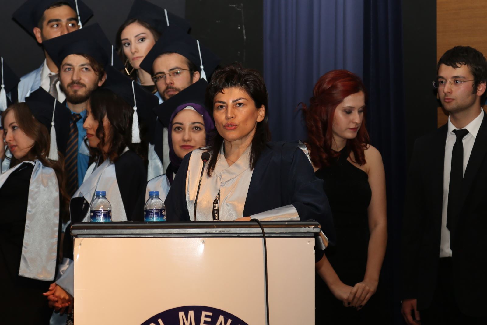 Tıp Fakültesi okul birincisi Dr. Musa Dönmez, yaptığı konuşmasında, Tıp Fakültesinde okumanın zorluklarına değinirken, Adnan Menderes Üniversitesi’nden mezun olmanın mutluluğu yaşadığını belirterek hocalarına ve ailesine teşekkür etti.
