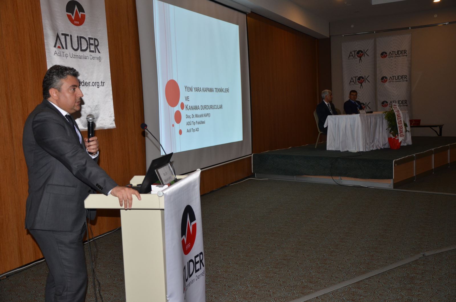 Rektörümüz Prof. Dr. Cavit Bircan ve Tıp Fakültesi Dekanı Prof. Dr. Serpil DemiraÄŸ’ın onursal baÅŸkan, ATUDER Yönetim Kurulu BaÅŸkanı Sayın Prof. Dr. BaÅŸar Cander , BaÅŸhekim Yardımcımız Doç. Dr. Ayhan Aköz ve Doç.Dr. Mücahit Avcil’ in baÅŸkan olduÄŸu sempozyuma, BaÅŸhekimimiz Doç. Dr. Mücahit Kapçı ve Acil Tıp Anabilim Dalı ÖÄŸretim Görevlileri katılımı ile gerçekleÅŸti.