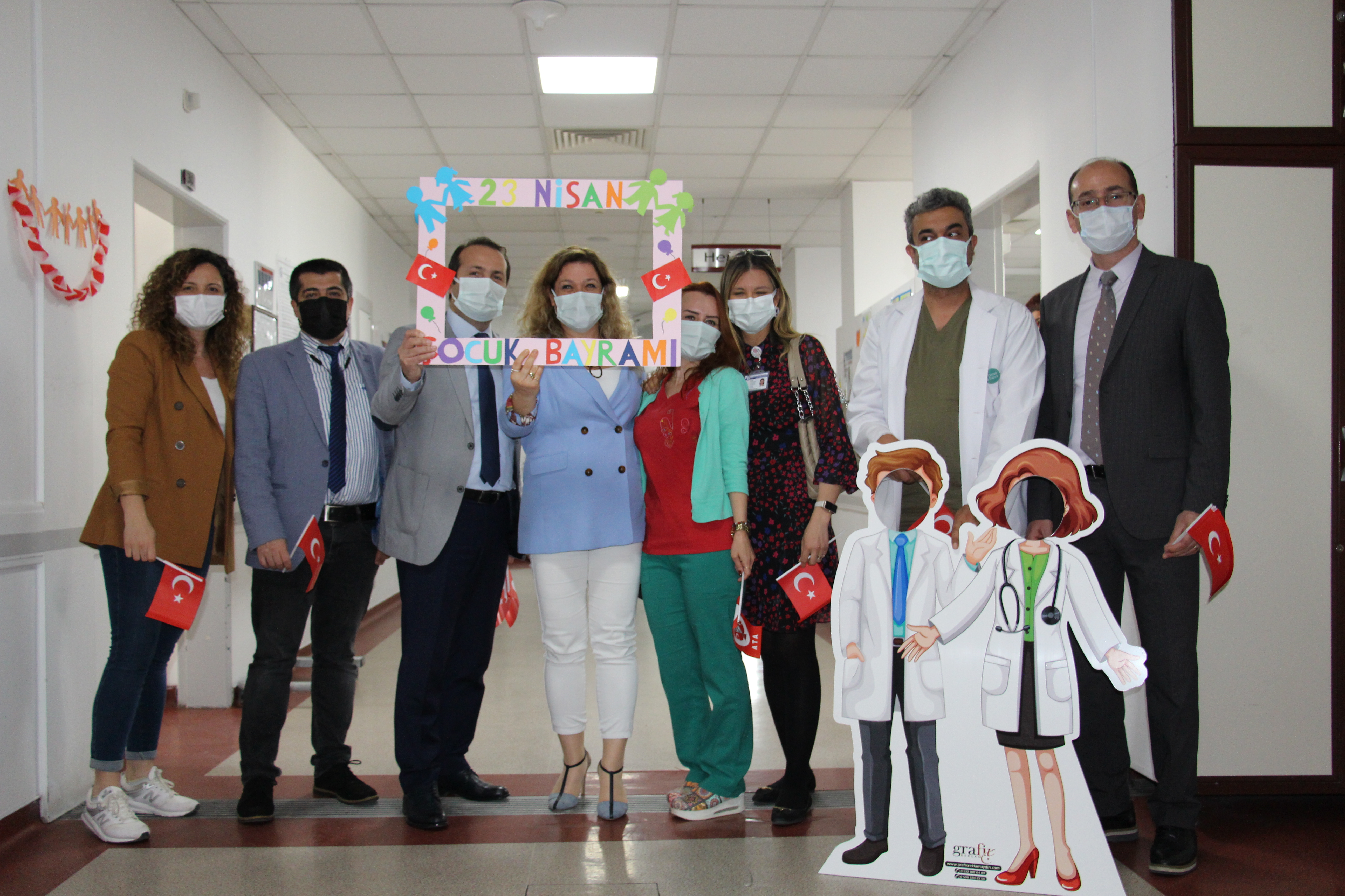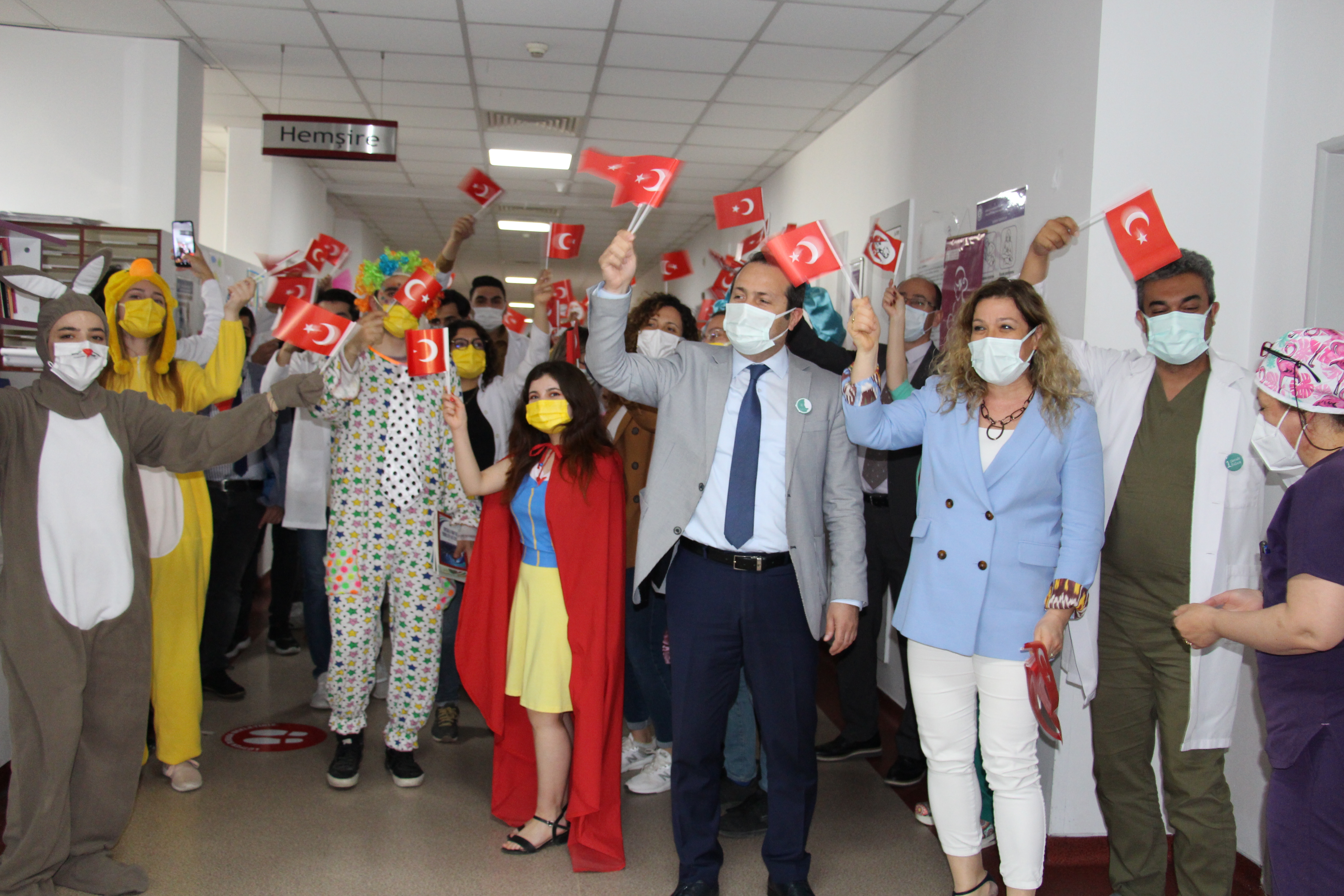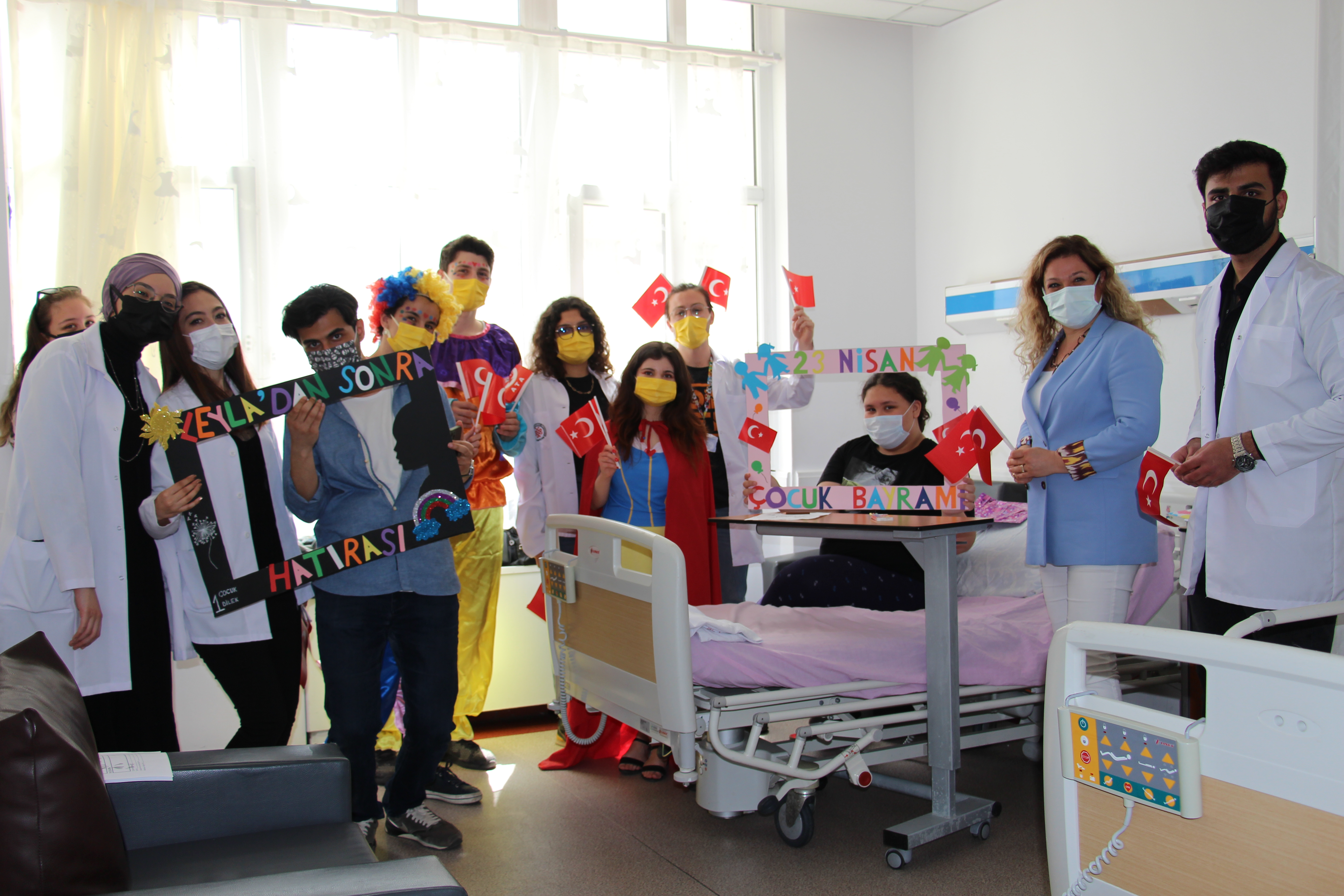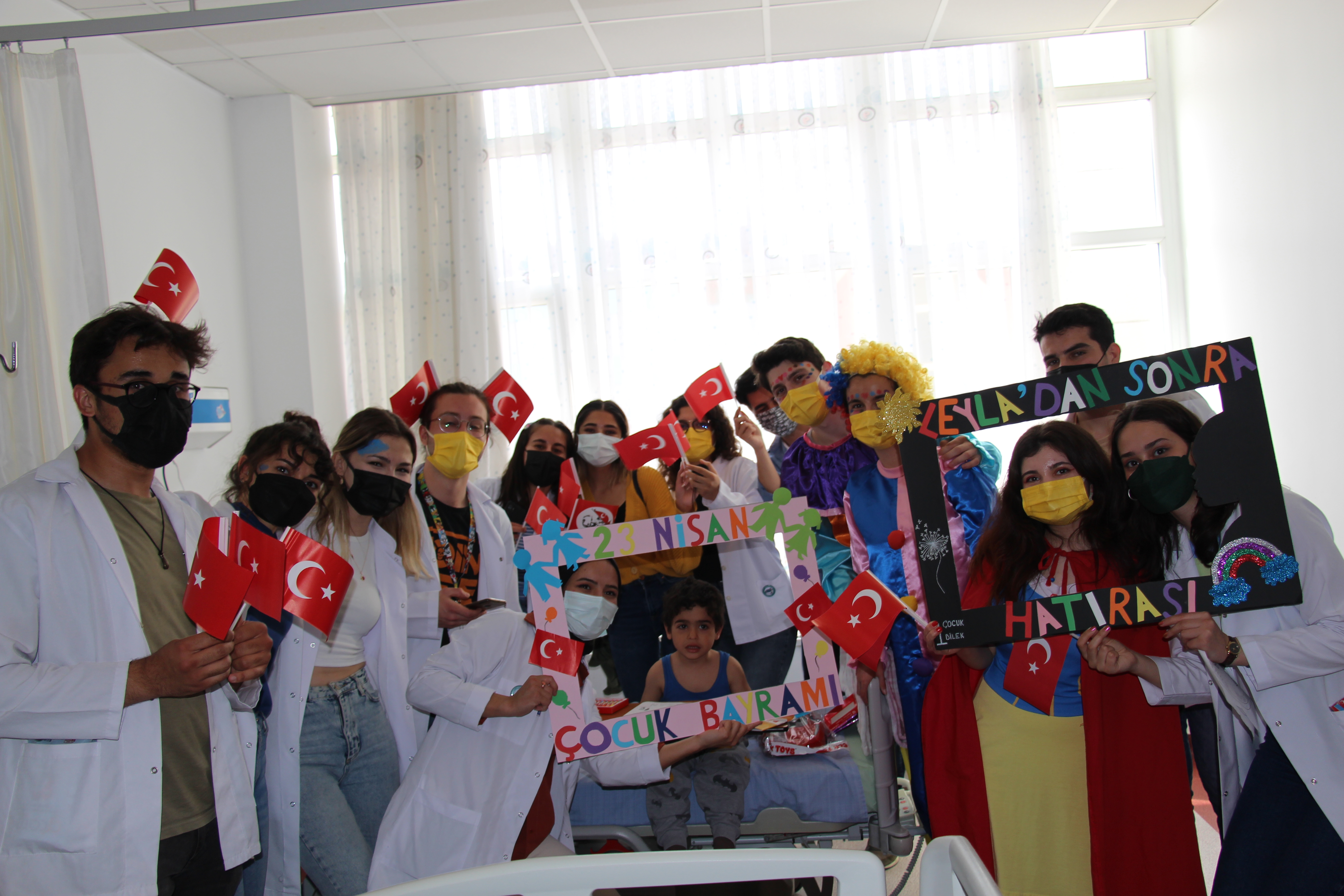Fakültemiz Dekan V. Prof. Dr. Ayhan Aköz, Dekan Yardımcılarımız Prof. Dr. Gökhan Cesur ve Doç. Dr. Ali Duman ile Başhekim Doç. Dr. Gülnur Taşçı Bozbaş, Başhekim Yardımcıları Dr. Öğr. Üyesi Ayça Tuzcu, Dr. Öğr. Üyesi Selçuk Eren Çanakçı, Fakültemiz öğrenci gruplarından Leyladan Sonra grubu hastanemizde tedavi görmekte olan çocukları ziyaret ederek, 23 Nisan Ulusal Egemenlik ve Çocuk Bayramlarını kutladılar.
