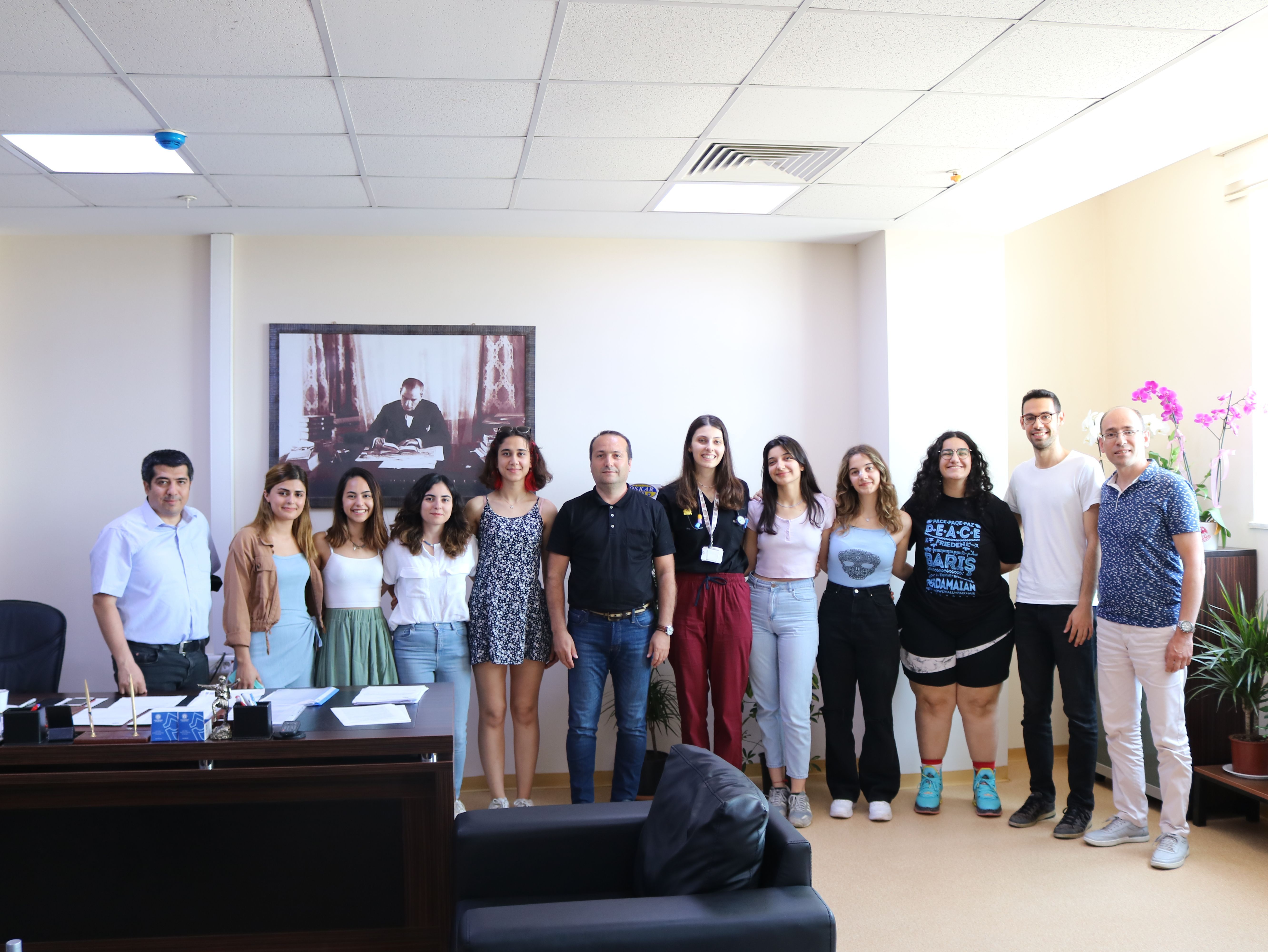 Öğrencilerimiz, Dekan V. Prof. Dr. Ayhan AKÖZ’ü makamında ziyaret ederek, Dekan ve Dekan Yardımcılarımız Kadın Basketbol Takımını başarılarından dolayı tebrik ettiler.