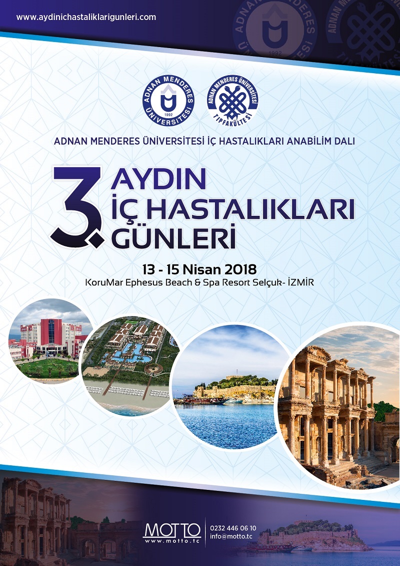 Adnan Menderes Üniversitesi Tıp Fakültesi İç Hastalıkları Anabilim Dalı tarafından 13-15 Nisan 2018 tarihleri arasında, “3. Aydın İç Hastalıkları Günleri” adlı Sempozyum düzenlenecektir.