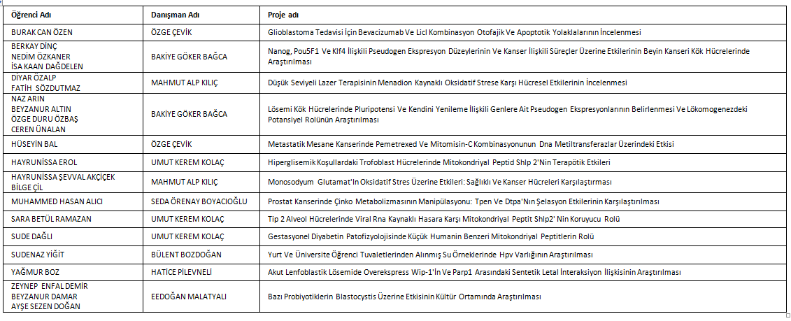 Destek Almaya Hak Kazanan Tıp Fakültesi Projeleri: