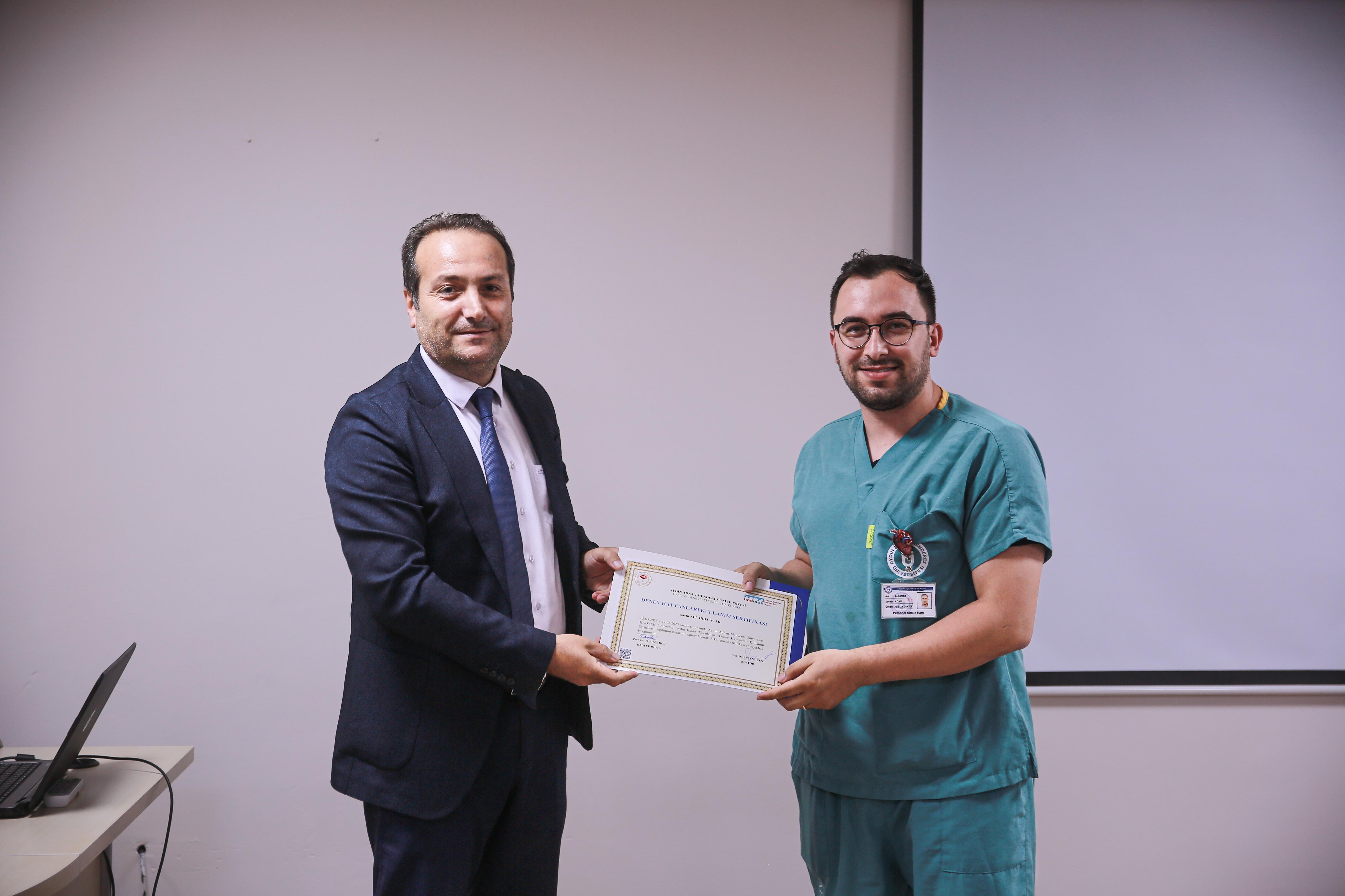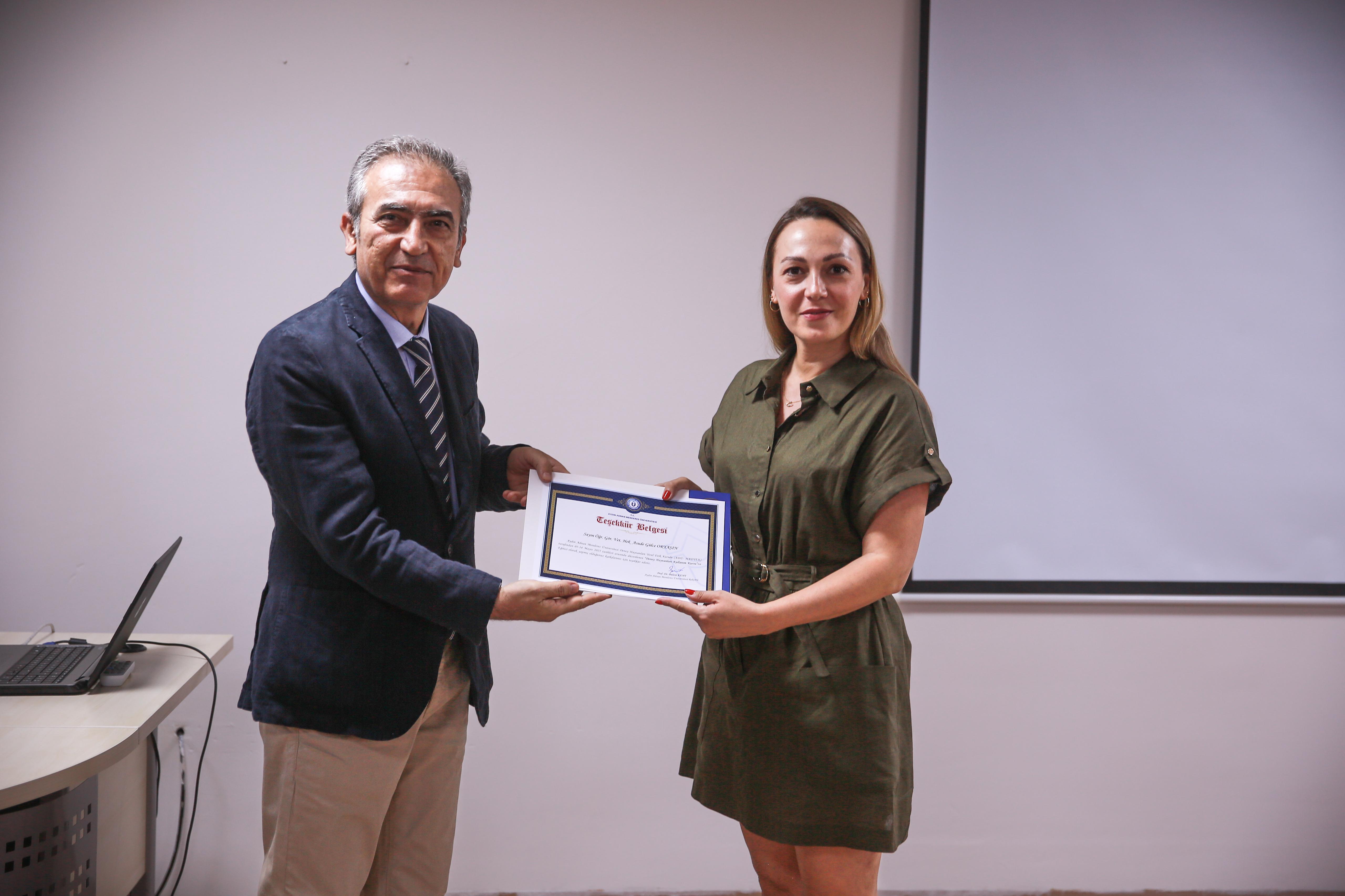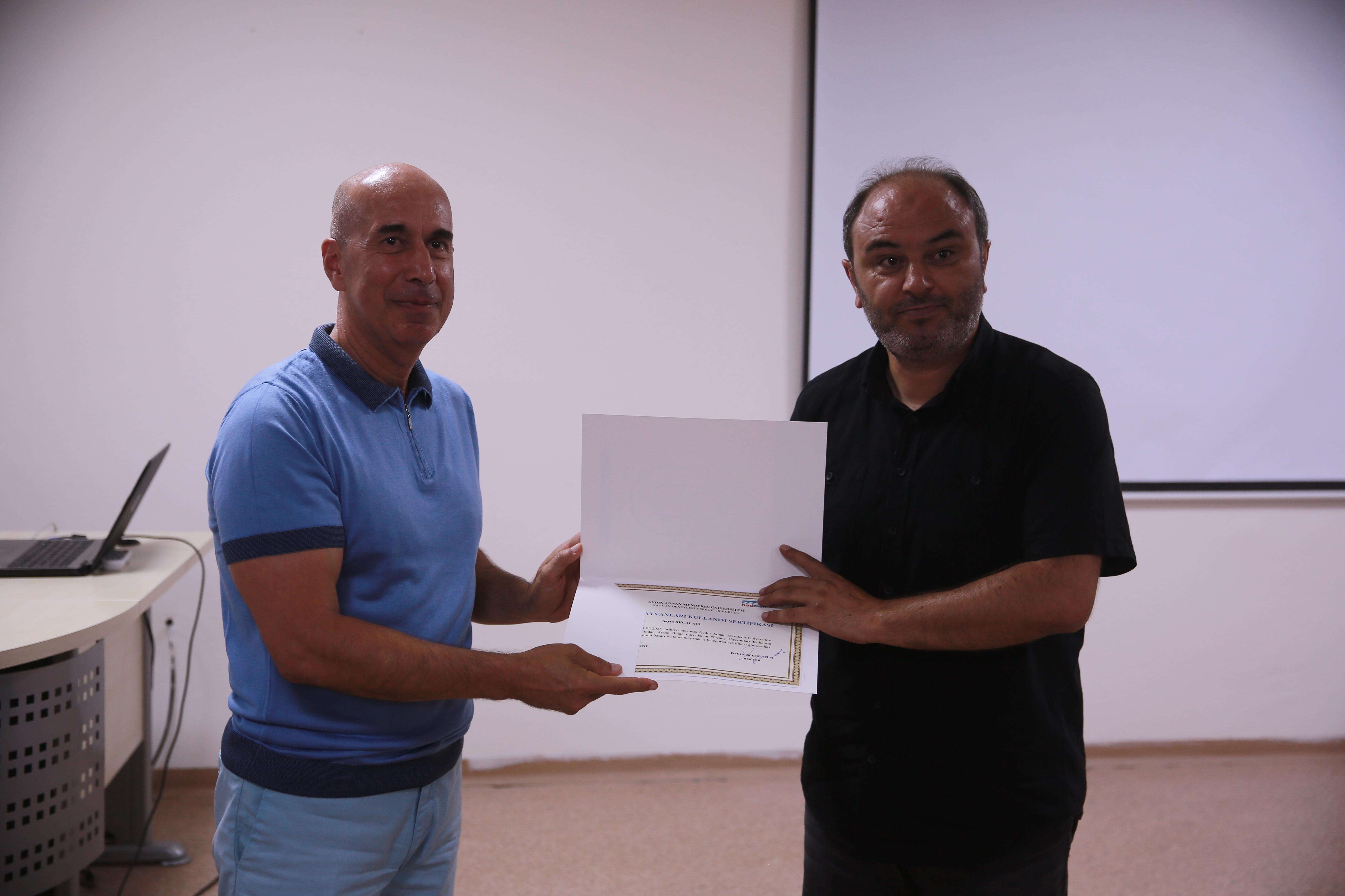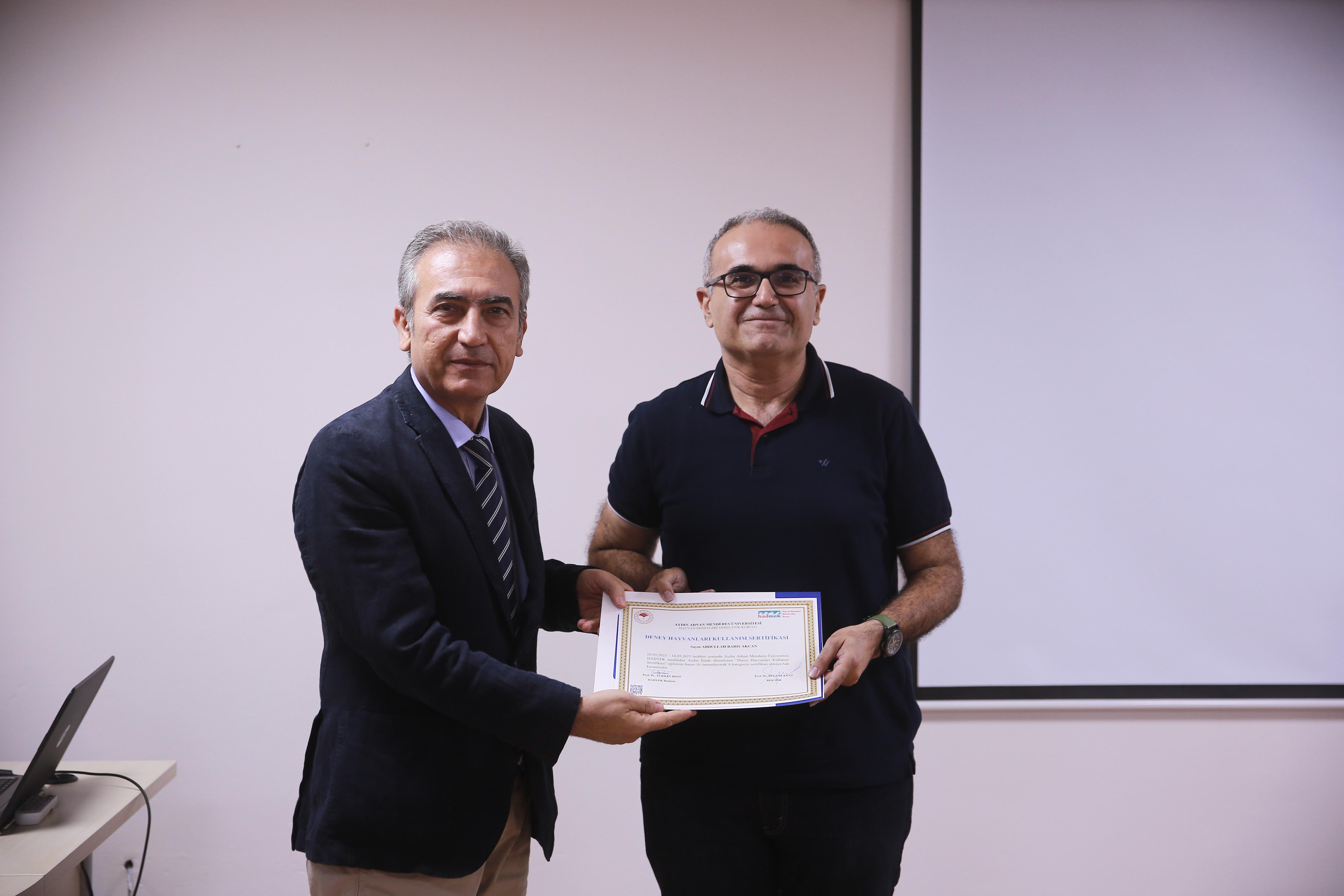 Tıp Fakültesi ve Veteriner Fakültesi öğretim üyeleri tarafından gerçekleştirilen eğitimleri başarıyla tamamlayan akademisyenlere sertifikaları, Üniversitemiz Rektör Yardımcısı Prof. Dr. Cengiz Özarslan, Fakültemiz Dekanı Prof. Dr. Ayhan Aköz, HADYEK Başkanı Prof. Dr. Turhan Dost, HADYEK Başkan Yardımcısı Prof. Dr. Cengiz ÜNSAL ve Fakültemiz Temel Tıp Bilimleri Bölüm Başkanı Prof. Dr. Mehmet Dinçer BİLGİN tarafından takdim edildi. Törende ayrıca eğitimlere katkı sunan öğretim üyelerine de teşekkür belgeleri takdim edildi.