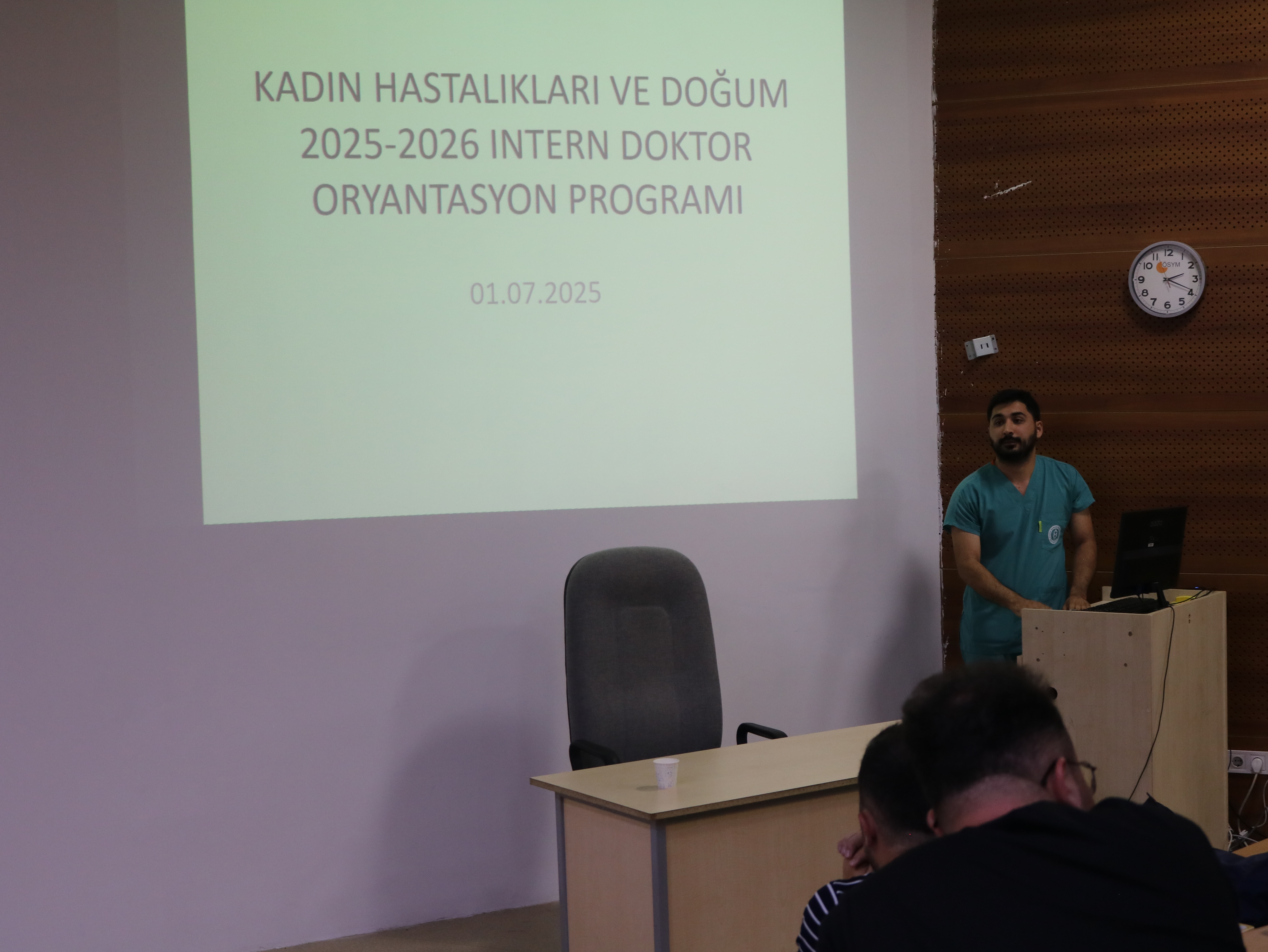 01 Temmuz 2025 tarihi itibariyle 6. sınıf intörnlük eğitimine başlayan öğrencilerimiz için, Fakültemiz Anfi-4’te 01 Temmuz 2025 tarihinde oryantasyon eğitimi gerçekleştirilmiştir. Eğitim, Dönem VI koordinatörü Doç. Dr. Ayşe ANIK’ın Dönem VI öğrencilerine intörn hekim döneminin eğitim işleyişi hakkında bilgi vermesiyle başladı. Acil Tıp, Aile Hekimliği, Ruh Sağlığı ve Hastalıkları, Halk Sağlığı, İç Hastalıkları, Genel Cerrahi, Kadın Hastalıkları ve Doğum ile Çocuk Sağlığı ve Hastalıkları Ana Bilim Dallarından öğretim üyelerinin ve asistanların sunumları ile devam eden program, soru katkı ve önerilerin alınması ile son bulmuştur.
