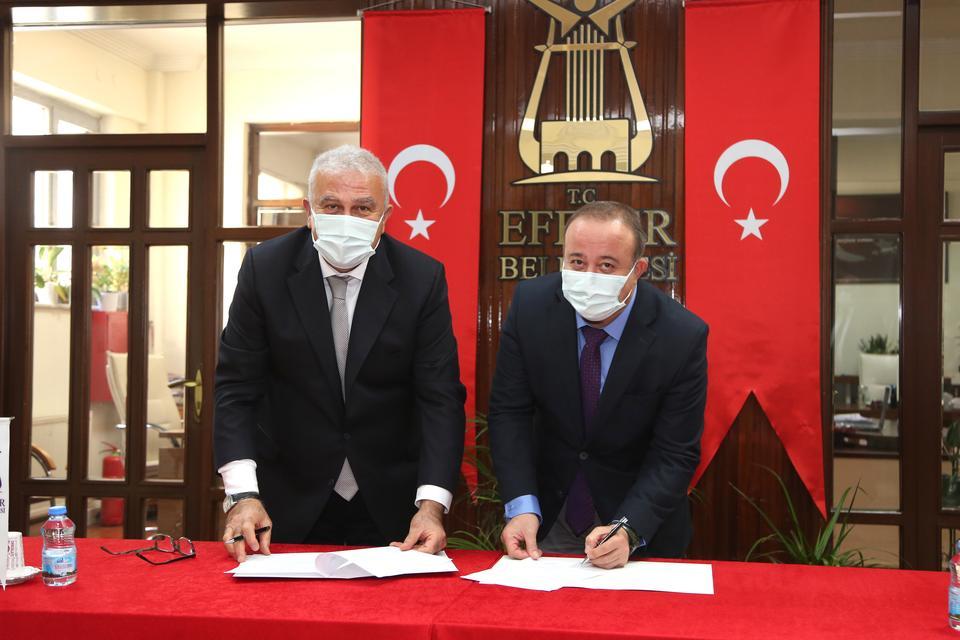 Efeler Belediyesi ile Aydın Adnan Menderes Üniversitesi (ADÜ) Tıp Fakültesi arasında, ADÜ Tıp Fakültesi 6’ncı sınıf öÄŸrencilerinin halk saÄŸlığı stajları için eÄŸitim iÅŸbirliÄŸi protokolü imzalandı. Efeler Belediye BaÅŸkanı Mehmet Fatih Atay ve ADÜ Tıp Fakültesi Dekan V. Prof. Dr. Erdem Ali Özkısacık arasında gerçekleÅŸen imza törenine, Halk SaÄŸlığı Anabilim Dalı BaÅŸkanı Prof. Dr. Pınar Okyay, Halk SaÄŸlığı Anabilim Dalı ÖÄŸretim Üyesi Prof. Dr. Filiz Abacıgil ve Tıp Fakültesi Dekan Yardımcısı Dr. ÖÄŸretim Üyesi Nazlı Gülriz Çeri katıldı.