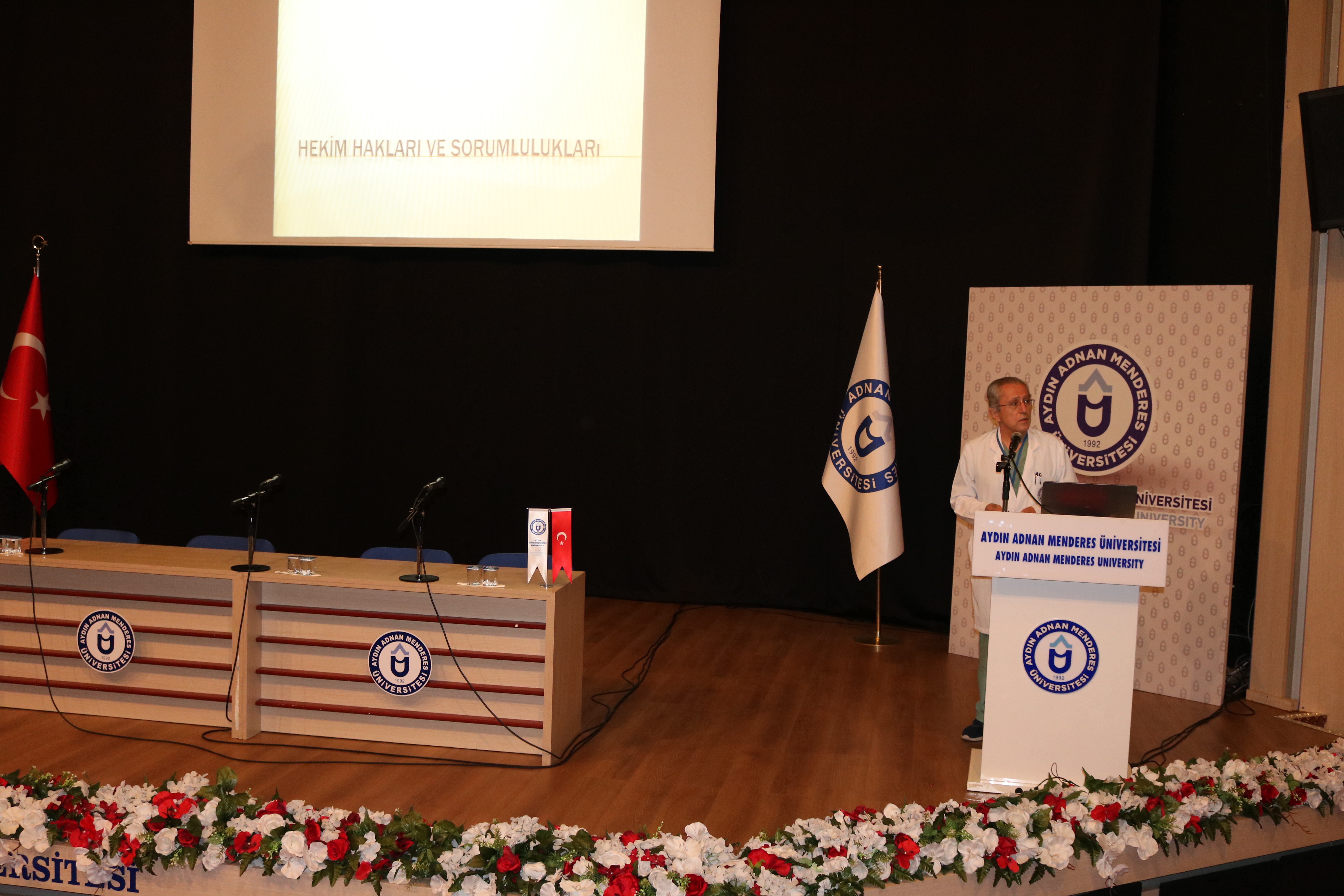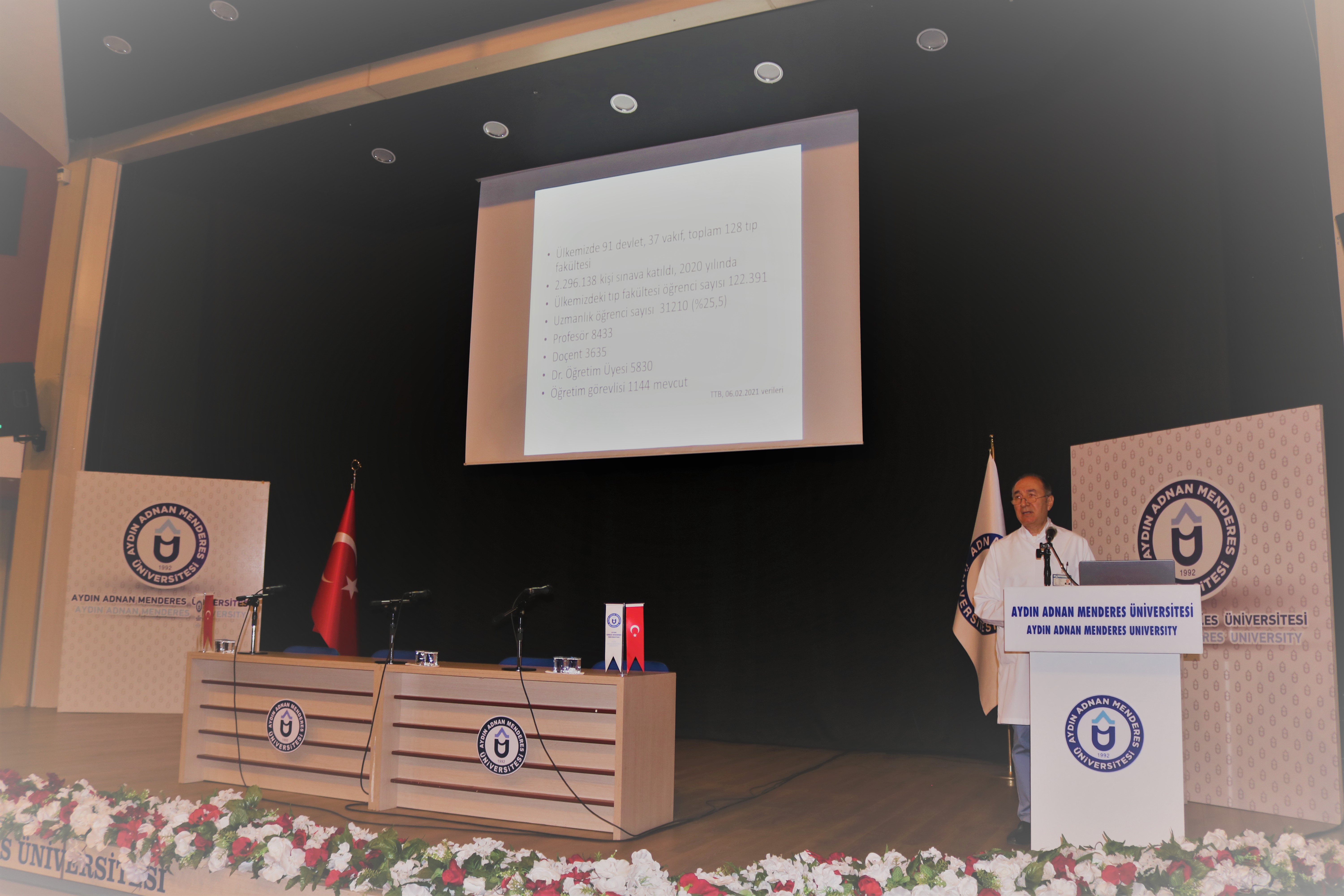 Saygı duruÅŸu ve İstiklal Marşı ile baÅŸlayan toplantı Tıp Fakültesi Dekan Yardımcısı Dr. ÖÄŸretim Üyesi Nazlı Gülriz ÇERİ ve Tıpta Uzmanlık EÄŸitimi Koordinasyon Kurulu BaÅŸkanı Prof. Dr. A. AktuÄŸ ERTEKİN’in konuÅŸmalarıyla baÅŸladı.
