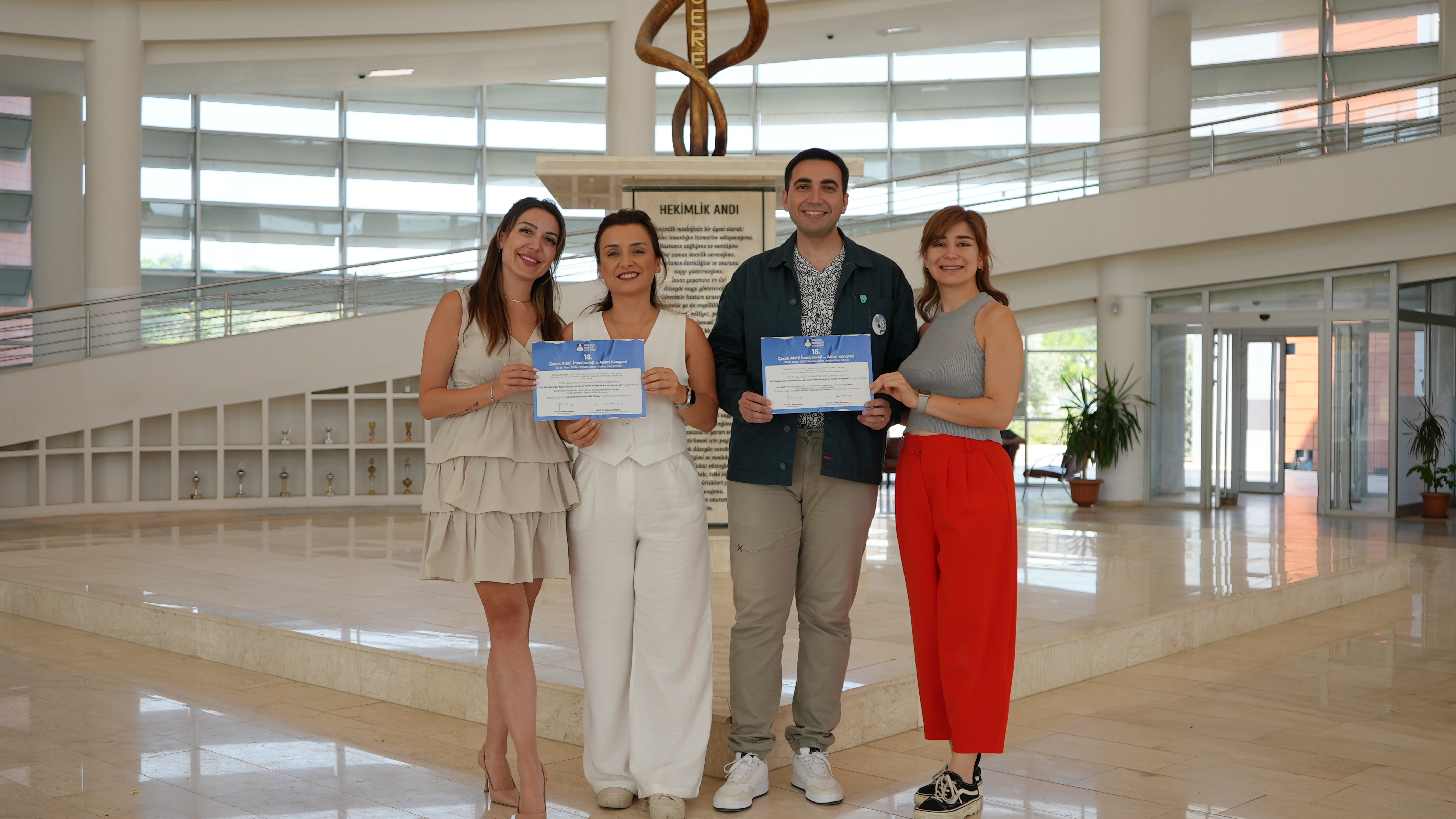 Fakültemiz Çocuk İmmünolojisi ve Alerji Hastalıkları Bilim Dalı ekibi 25-28 Nisan 2024 tarihinde düzenlenen 18. Çocuk Alerji İmmünoloji ve Astım Kongresi’nden üniversitemiz adına güzel haberler ile dönmüÅŸlerdir. Prof. Dr. Pınar Uysal’a 2023 yılı Bilim Kurulu BaÅŸkanlığı yaptığı için plaket ödülü takdim edilmiÅŸtir. Uzm. Dr. Zeynep Güleç Köksal’ın yürüttüÄŸü Prof. Dr. Pınar Uysal, Prof. Dr. Özge Çevik, Uzm. Dr. Bakiye Göker BaÄŸca ve Prof. Dr. Gizem Yalçın’ın da yer aldığı “Çocuklarda Atopik Dermatit: Cilt ve Kan Belirteçlerinin AkciÄŸer Fonksiyonlarıyla İliÅŸkisinin İncelenmesi” adlı çalışma Sözlü Bildiri Birincilik Ödülü’nü; Uzm. Dr. Cihangir Åžahin’in yürüttüÄŸü Uzm. Hem. Åžule Çınaklı, Uzm. Dr. Simge Atar BeÅŸe, Uzm. Dr. Gülten Tunçerler, Uzm. Dr. Nur Törer, Prof. Dr. Duygu Erge, Prof. Dr. Pınar Uysal’ın da yer aldığı “Oyun Gibi Bir Deri Testi Deneyimi: Sanal GerçekliÄŸin (VR) Çocuklarda Deri Prik Testine BaÄŸlı AÄŸrı ve Korku Üzerine Etkisi (Randomize Kontrollü Çalışma)” adlı çalışma ise sözlü bildiri üçüncülük ödülü’nü almaya hak kazanmıştır.