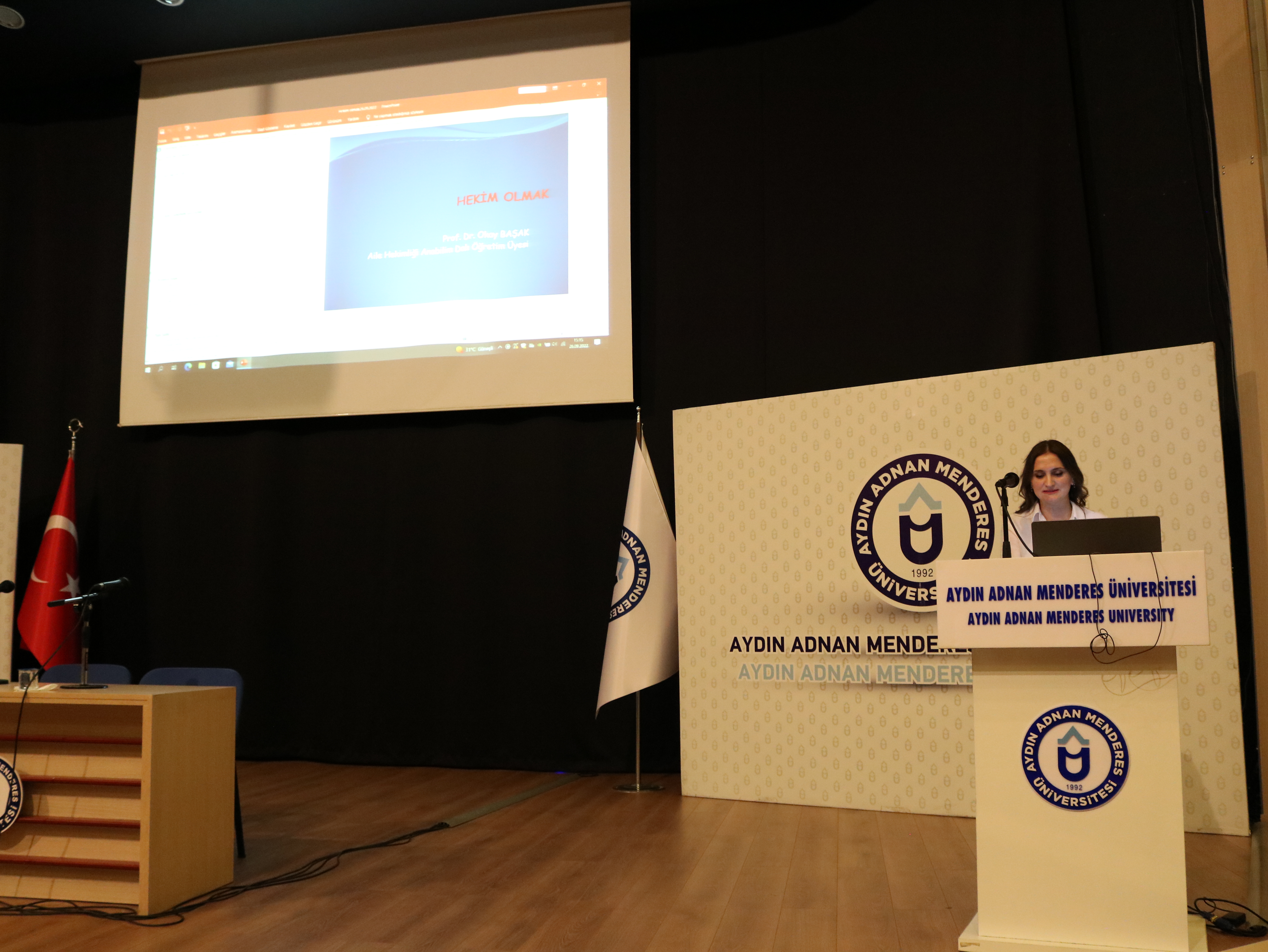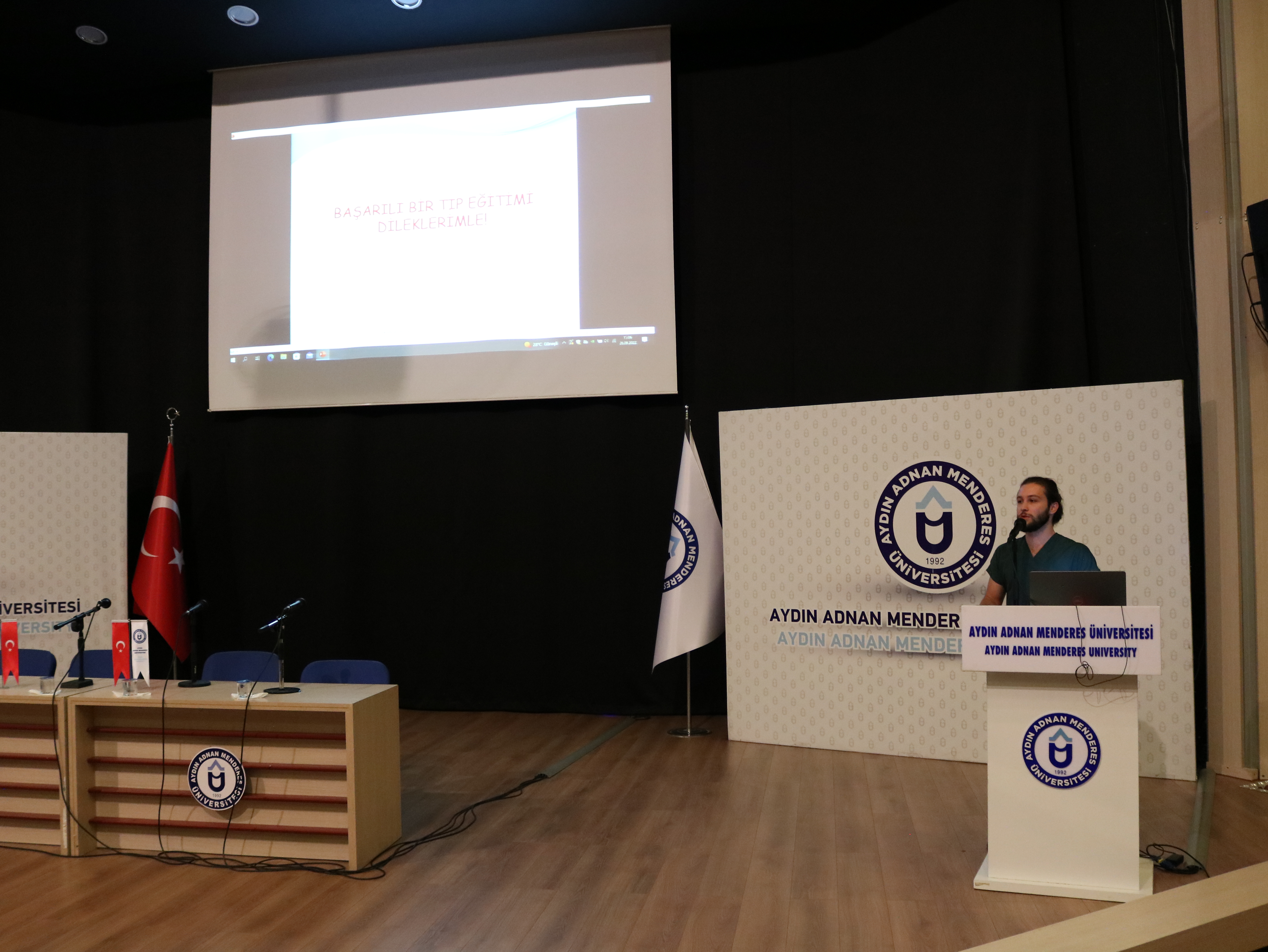Fakültemiz Dekan V. Prof. Dr. Ayhan AKÖZ'ün açılış konuÅŸmasının ardından, öÄŸretim üyemiz Prof. Dr. AyÅŸe Fahriye TOSUN'un ''Dünden Bugüne Adü Tıp Fakültesi'' sunumu, Prof. Dr. Okay BAÅžAK'ın ''Hekim Olmak'' sunumu, Rektörümüz Prof. Dr. Osman SELÇUK ALDEMİR'in konuÅŸması ile Dönem Temsilcisi öÄŸrencilerimiz ve AraÅŸ. Gör. Dr. Pelin BİLGİN KAHVECİ'nin sunumu ile devam etmiÅŸ, fotograf çekimlerinin ardından program sona ermiÅŸtir.