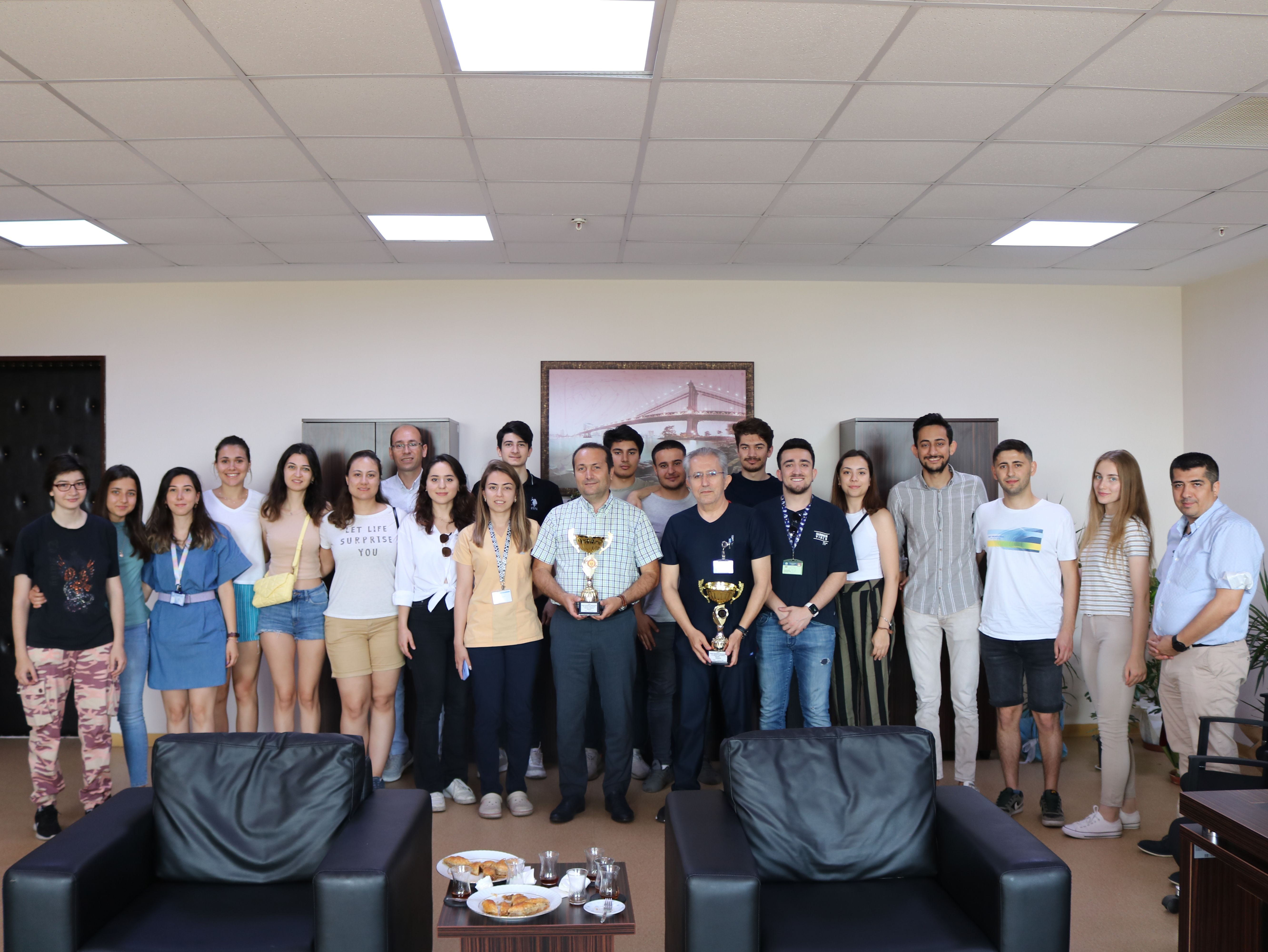 26. ADÜFEST Spor Turnuvasında, Fakültemiz Kadın Voleybol Takımı 1. lik elde etmiÅŸtir.Dekan V. Prof. Dr. Ayhan AKÖZ, öÄŸrencilerimizi makamında ağırlayarak, Kadın Voleybol Takımını baÅŸarılarından dolayı tebrik etmiÅŸtir.