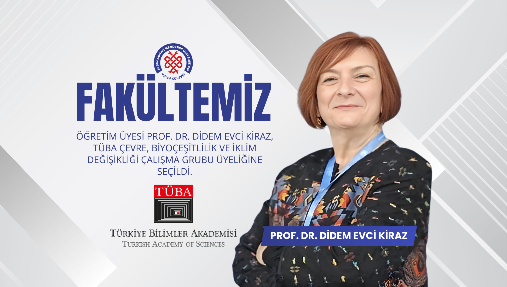 Fakültemiz Halk Sağlığı Anabilim Dalı öğretim üyesi Prof. Dr. Didem Evci Kiraz, Türkiye Bilimler Akademisi (TÜBA) bünyesinde faaliyet gösteren TÜBA-Çevre, Biyoçeşitlilik ve İklim Değişikliği Çalışma Grubu’na üye olarak seçilmiştir.