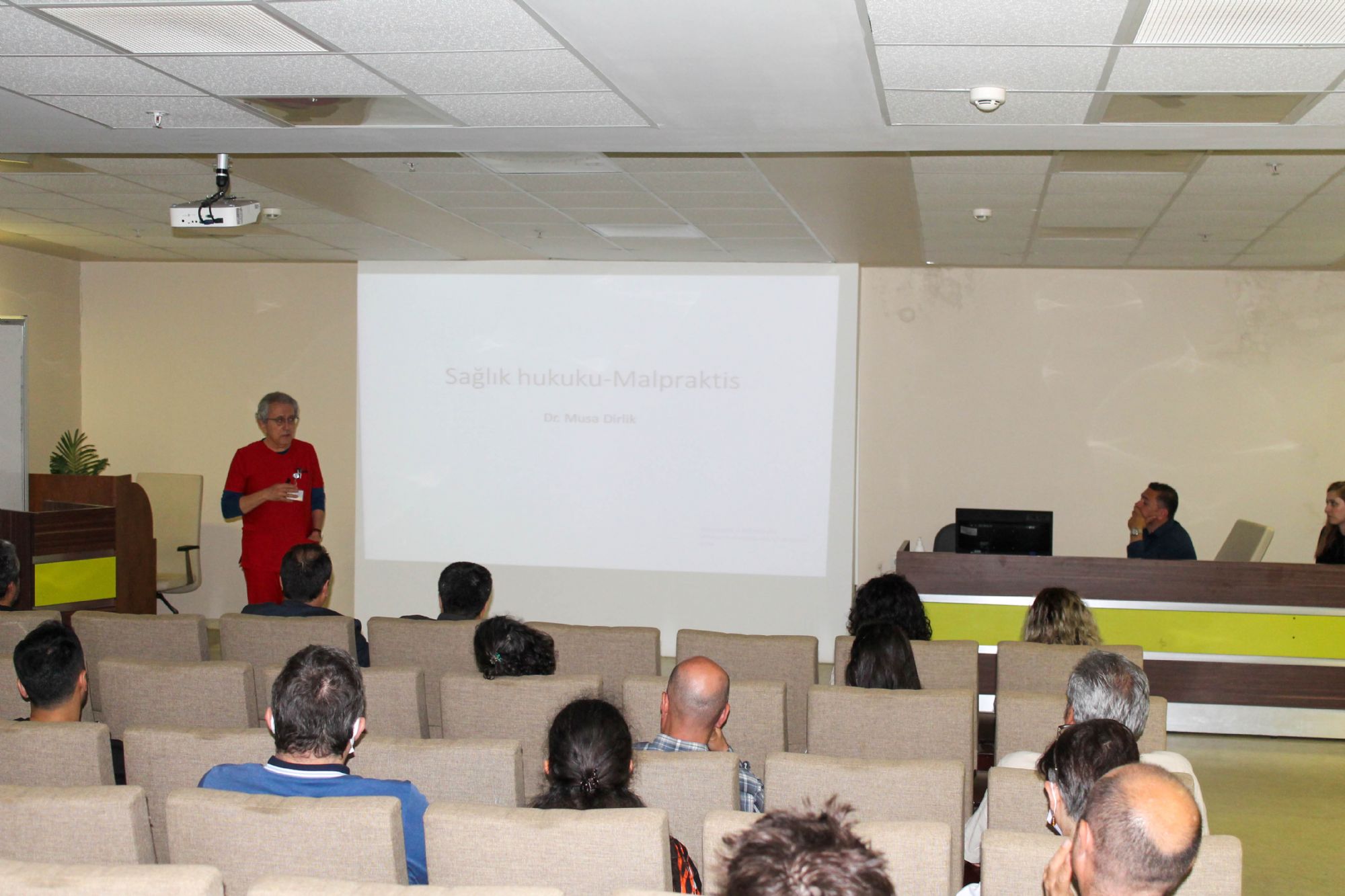 Açılış konuÅŸmasını TUEK BaÅŸkan Yardımcısı Prof. Dr. Berna Korkmazgil’in yaptığı etkinlikte; Tıp Fakültesi Adli Tıp Ana Bilim Dalı ÖÄŸretim Üyesi Prof. Dr. Musa Dirlik ve Kurum Avukatı Sabri Güleç konuÅŸmacı olarak yer aldı. Prof. Dr. Musa Dirlik yaptığı sunumda, tedavi sürecinde oluÅŸabilecek komplikasyonların neler olabileceÄŸi, nelere dikkat edilmesi gerektiÄŸi, neler yapılması gerektiÄŸi hakkında bilgiler verirken hasta ile iletiÅŸimin önemine vurgu yaptı.