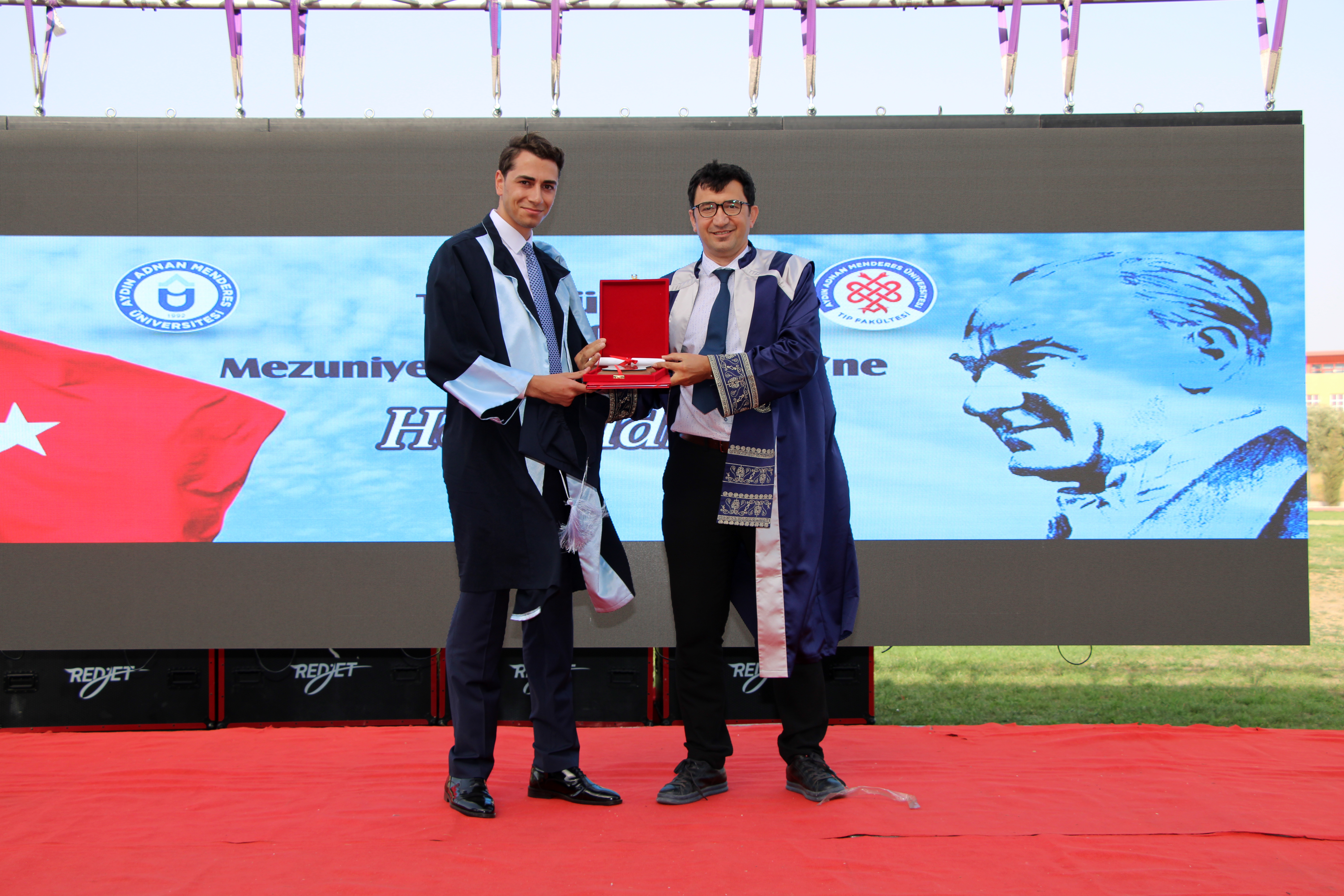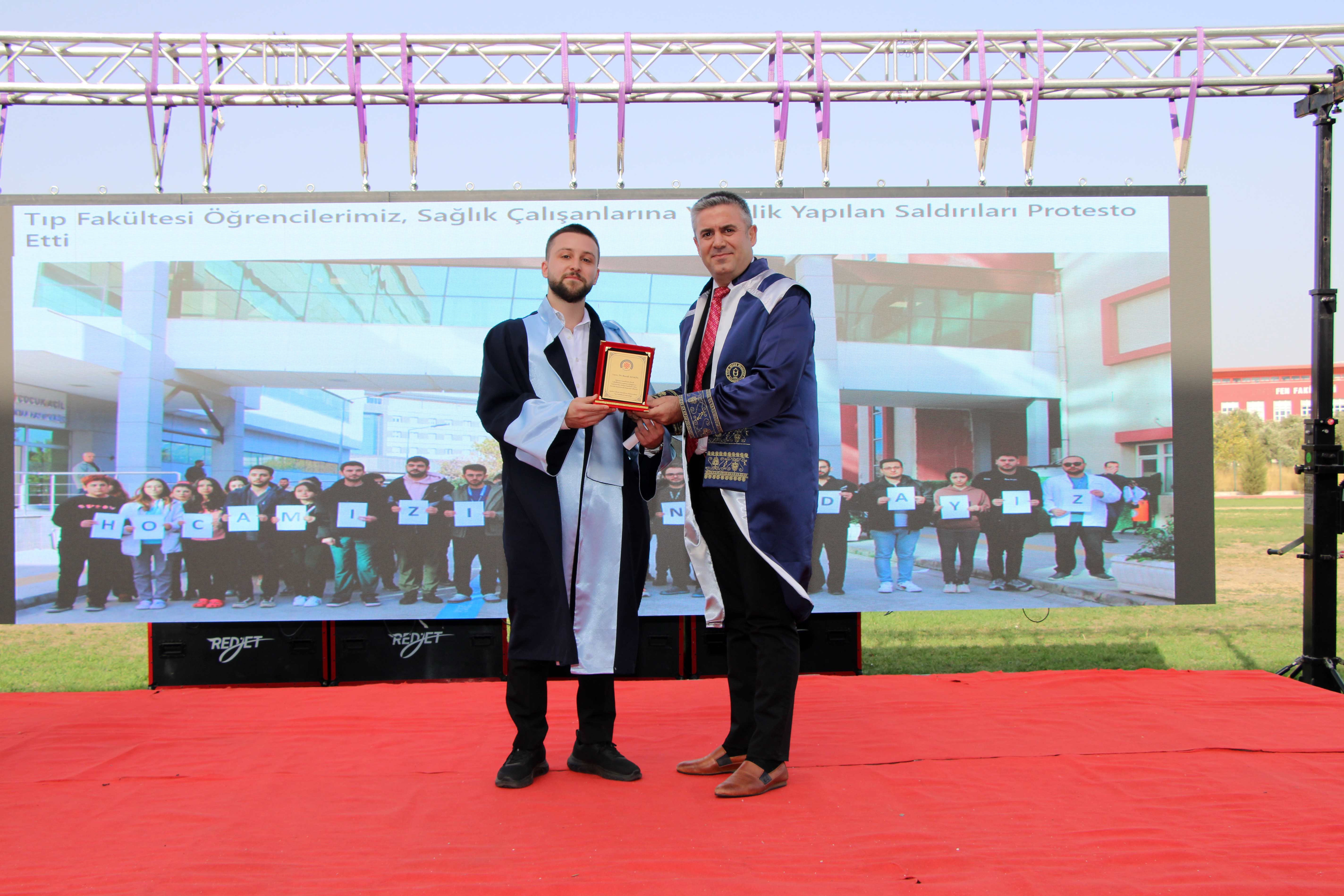 Dönem 1.’si Dr. Minevver Esma Acat’ın mezuniyet yaş kütüğüne ismini çakmasının ardından, Rektörümüz Prof. Dr. Bülent Kent tarafından kendisine plaket ve başarı belgesi verildi. Dönem 2.’si Dr. Fatma Zehra Bağlıca’ya plaket ve başarı belgesi Rektör Yardımcımız Prof. Dr. Cemal İyem, Dönem 3.’sü Dr. Tuğçe Yaralı’ya plaket ve başarı belgesi Dekanımız Prof. Dr. Ayhan Aköz, Dönem Temsilcisi Dr. Burak Keskin’e üstün çabası ve emeklerinden dolayı plaket ve başarı belgesi Rektör Yardımcımız Prof. Dr. Erkan Salan, Acil Tıp Uzmanları Derneği (ATUDER) tarafından Yılın Acil İntörn Hekimi seçilen Dr. Emın Zakıyev’e plaket ve başarı belgesi Rektör Danışmanı ve Üniversitemiz Hastanesi Başhekimi Prof. Dr. Mücahit Avcil tarafından verildi