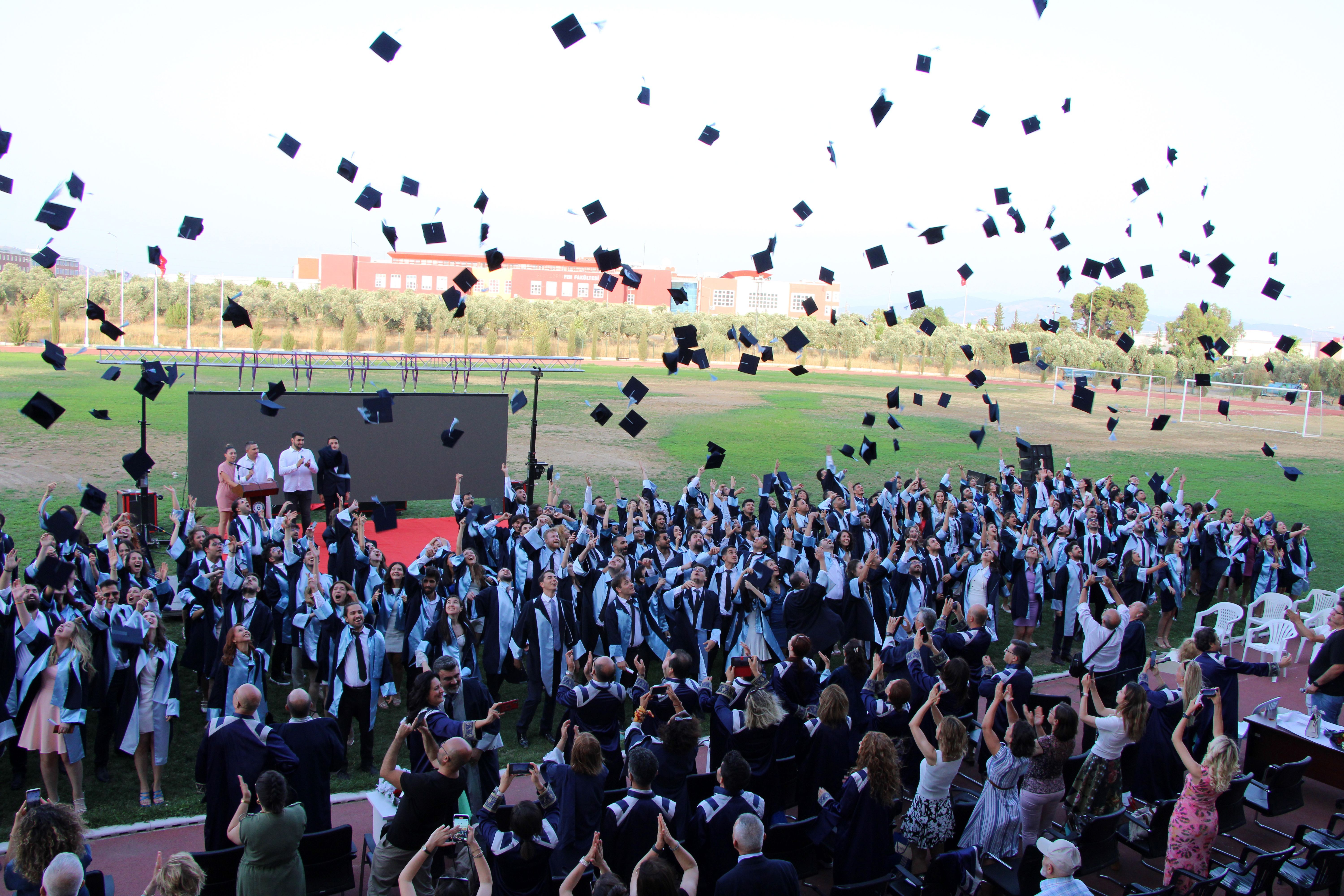 Öğretim üyelerimiz tarafından öğrencilerimize başarı belgelerinin verilmesinin ardından, Prof. Dr. Feray Gürsoy’un mezunlarımıza hekimlik andını okutması, kep atma ve müzik dinletisi sonrasında mezuniyet törenimiz sona ermiştir.