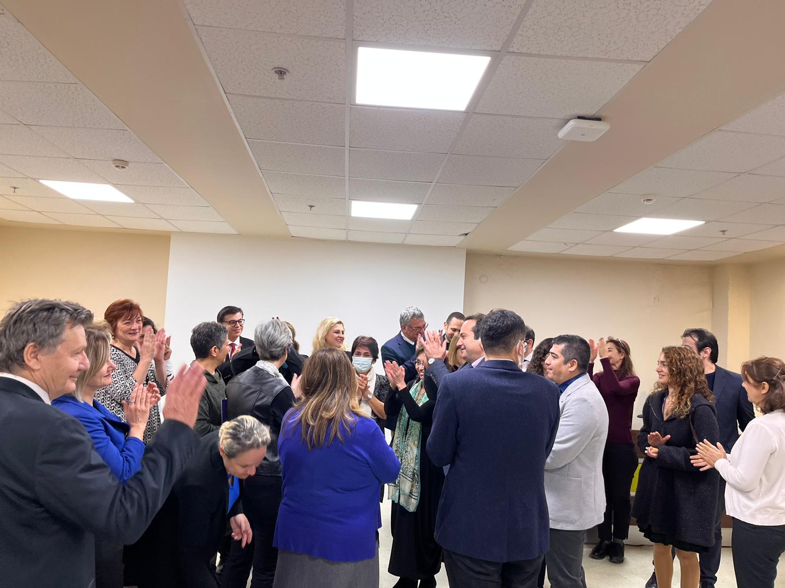 Akreditasyon ziyaretinin son gününde Akreditasyon Heyeti Tıp Fakültesi Dekanlığına veda ziyareti gerçekleÅŸtirmiÅŸtir. Nazik ziyaretlerinin ardından Heyet, 10 Aralık 2023 tarihinden bugüne dek gerçekleÅŸtirilen toplantı, ziyaret ve deÄŸerlendirmelerin sonuçlarının yer aldığı Çıkış görüÅŸmesi sunumunu 14 Aralık 2023 saat 10.30’da öÄŸretim üyeleri ve öÄŸrencilerin yoÄŸun ilgi göstererek katılım saÄŸladığı ÖÄŸretim Üyeleri BloÄŸu Seminer Salonunda gerçekleÅŸtirmiÅŸtir. TeÅŸekkür belgelerinin takdimi ve hatıra fotoÄŸraflarının çekilmesi ile ziyaret sona ermiÅŸtir. Akreditasyon sürecinin olumlu sonuçlanmasını diler, bu süreçte emeÄŸi geçen herkese çok teÅŸekkür ederiz.