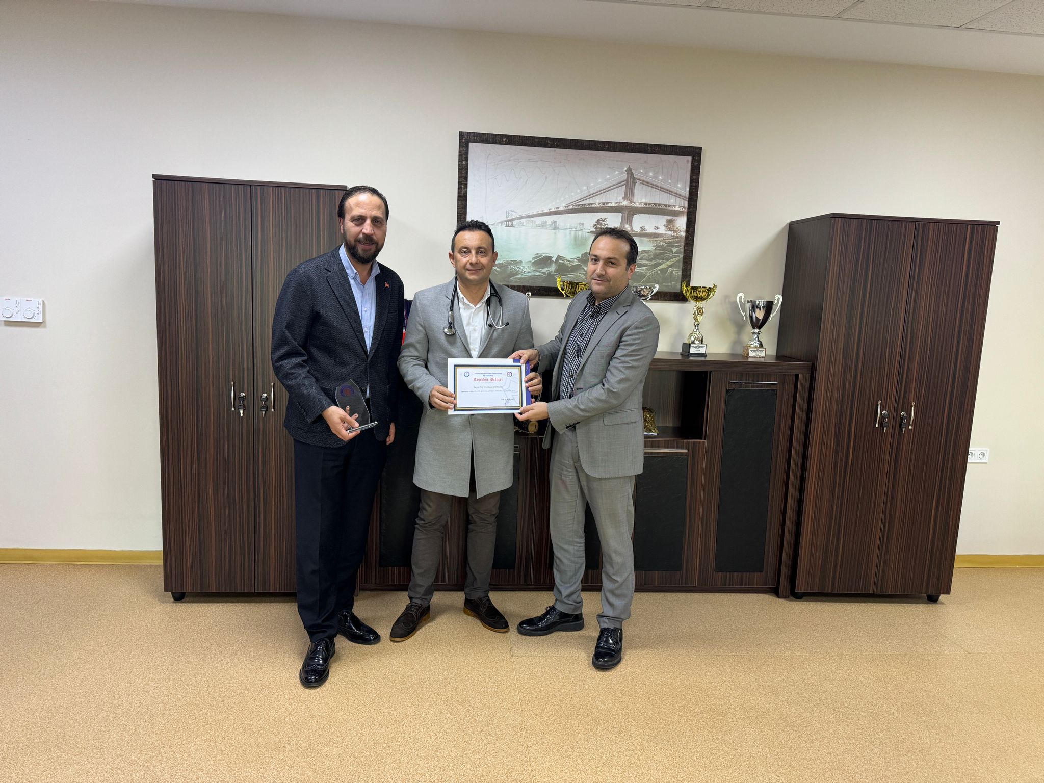 Fakültemize verdiği destek ile eğitimimize sağladığı katkılardan dolayı Sayın Hüseyin PEKGÜZEL’e teşekkür plaketi ve Kardiyoloji Ana Bilim Dalı öğretim üyesi Prof. Dr. Hasan GÜNGÖR’e teşekkür belgesi takdim edildi.
