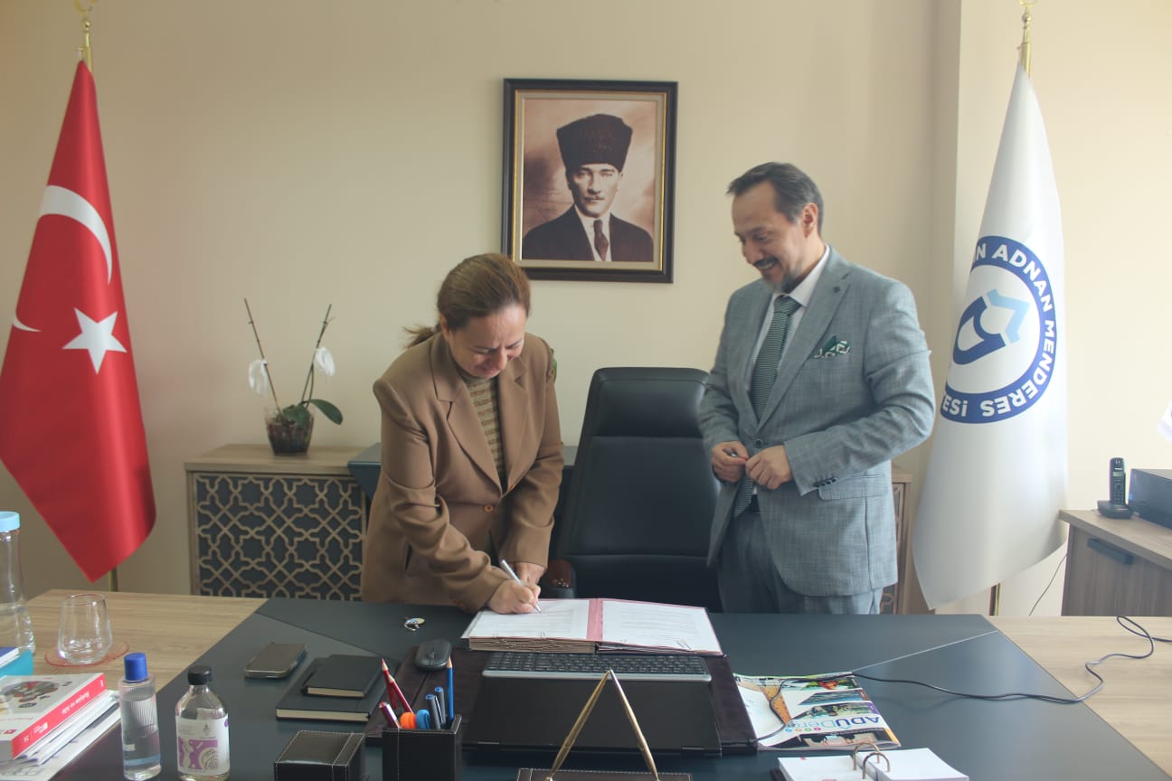 Aydın Adnan Menderes Üniversitesi İletiÅŸim Fakültesi ve Tıp Fakültesi arasında imzalanan iÅŸ birliÄŸi protokolü töreninde, İletiÅŸim Fakültesi Dekanı Prof. Dr. Mustafa Yılmaz, Tıp Fakültesi Dekanı Prof. Dr. Yasemin Özkan, Tıp Fakültesi Dekan Yardımcıları Prof. Dr. Gökhan Sargın ve Doç. Dr. Erhan AteÅŸ, Çocuk Ergen Ruh SaÄŸlığı ve Hastalıkları Ana Bilim Dalı Dr. ÖÄŸr. Üyesi Mustafa Dinçer ile İletiÅŸim Fakültesi Dekan Yardımcıları Doç. Dr. Ali Emre Dingin ve Dr. ÖÄŸr. Üyesi Mustafa Gökmen katıldı.