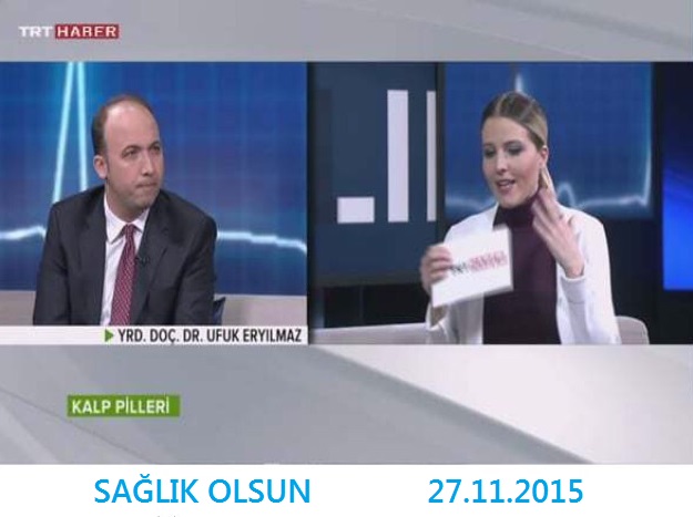Fakültemiz Kardiyoloji Anabilim Dalı Öğretim Üyesi Yrd. Doç. Dr. Ufuk ERYILMAZ, 27 Kasım 2015 tarihinde TRT HABER Kanalında canlı yayınlanan ‘Sağlık Olsun’ programına konuk oldu. Kalp ve Damar Hastalıklarında Aydın'da başarılı uygulamaları ile anılan Dr. ERYILMAZ, haftaiçi her gün yayınlanan "Sağlık Olsun" programına katılarak, kalp-damar hastalıkları, tedavisi, kalp yetersizliği hastalarında kalp pilleri ve kardiyak resenkronizasyon tedavisi hakkında bilgiler verdi.