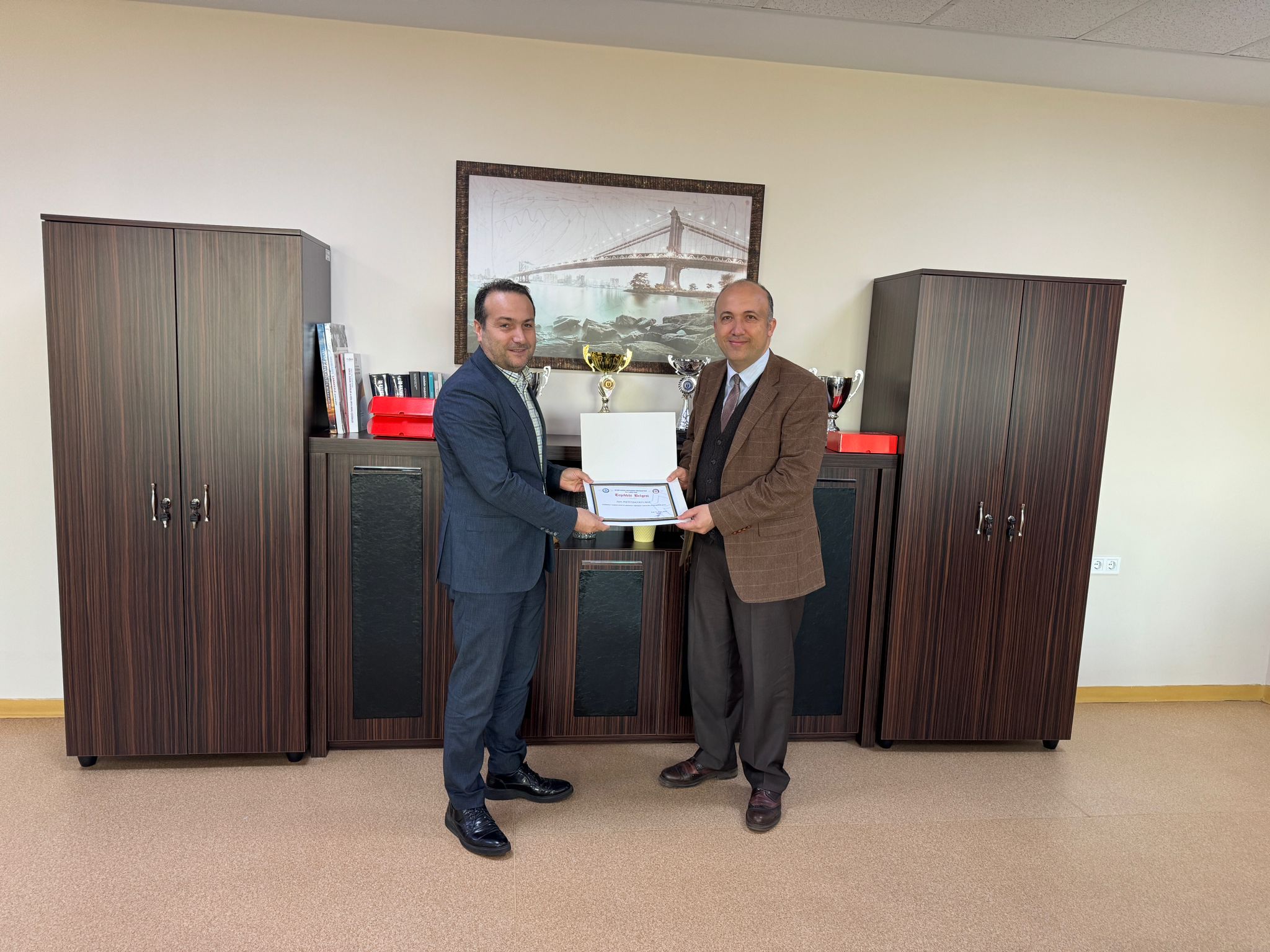 Fakültemize verdiÄŸi destek ile eÄŸitimimize saÄŸladığı katkılardan dolayı Sayın Mehmet KURTAR’a teÅŸekkür plaketi ve Kardiyoloji Ana Bilim Dalı öÄŸretim üyesi Prof. Dr. Ufuk ERYILMAZ’a teÅŸekkür belgesi takdim edildi.