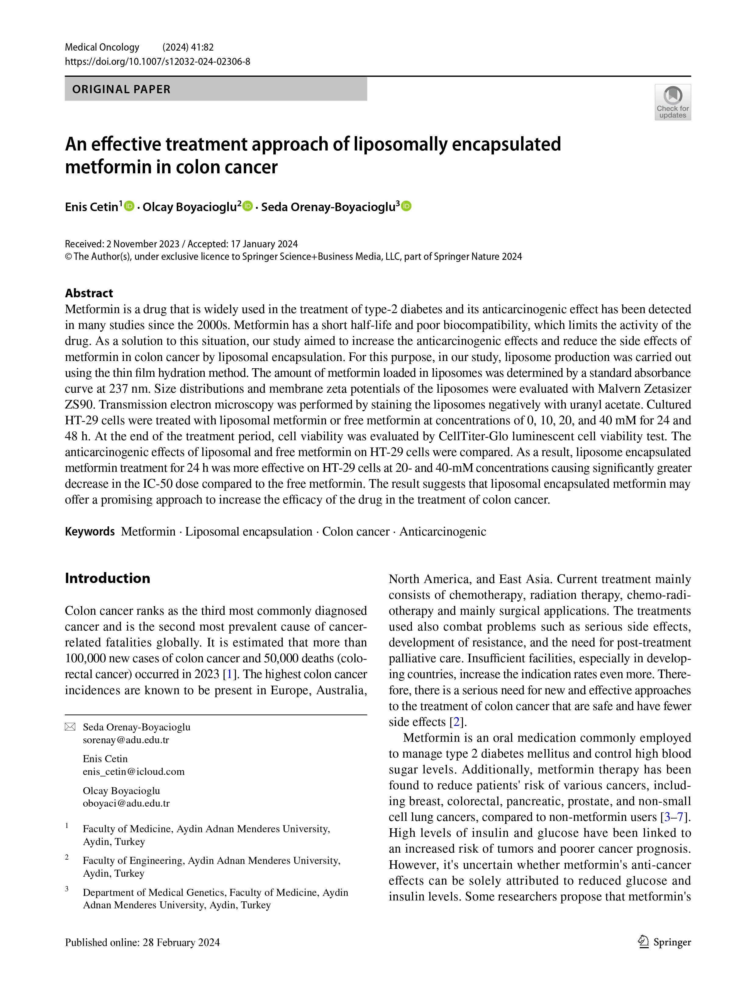 Fakültemiz öğrencisi Enis Çetin'in yürütücülüğünü yaptığı TÜBİTAK 2209/A öğrenci projesinin sonuçları SCIE kapsamında uluslararası prestijli Q2 sınıfı dergi olan Medical Oncology'de yayımlandı.