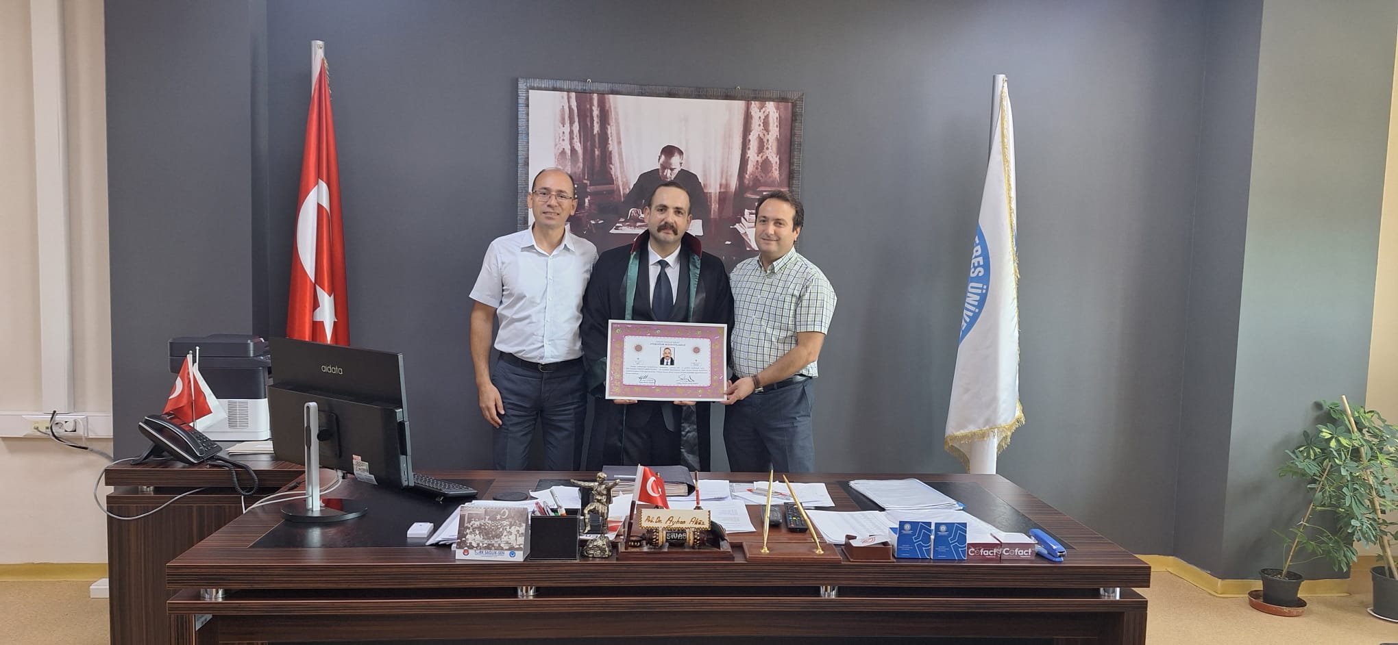 Temel Tıp Bilimleri Bölümü Fizyoloji Ana Bilim Dalı öÄŸretim üyemiz Dr. ÖÄŸr. Üyesi Ferhat Åžirinyıldız, Dokuz Eylül Üniversitesi Hukuk Fakültesini bitirmesinin ardından Aydın Barosunda Avukatlık Stajını tamamlayarak 09.10.2023 tarihinde gerçekleÅŸtirilen tören ile Avukatlık Ruhsatnamesini almıştır. Dekanımız Prof. Dr. Ayhan Aköz ve Dekan Yardımcımız Prof. Dr. Gökhan Cesur tarafından Dekanlık makamında kabul edilen öÄŸretim üyemizi kutlar, baÅŸarılarının devamını dileriz.