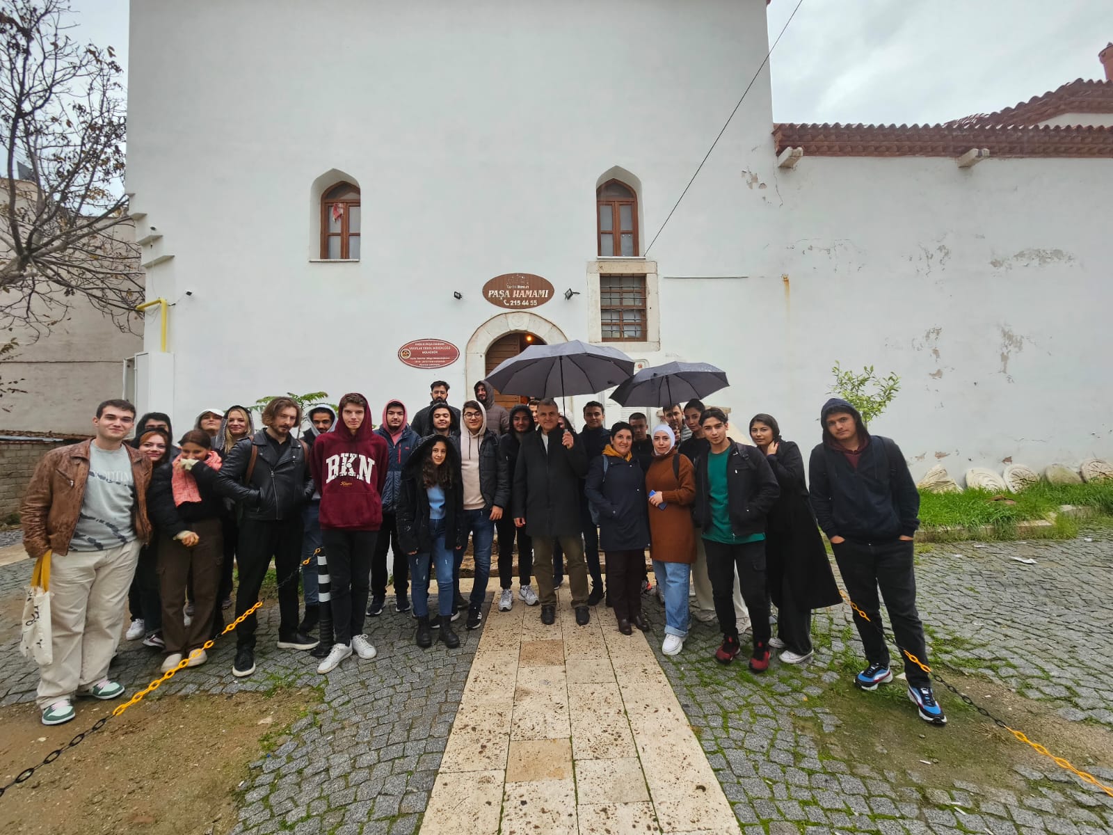 Özel Çalışma Modülü çalışmaları kapsamında Prof. Dr. Alpaslan GÖKÇİMEN’in yürütücülüğünde “Aydın Tarihi'' konulu ÖÇM programında, 22 Aralık 2023 tarihinde, Ramazan Paşa Camii, Osmanlı Hanı, Nasuhpaşa Külliyesi, hamamı ve Zincirlihan Öğr. Gör. Mükerrem KÜRÜM’ün rehberliğinde dönem 1 öğrencilerimiz ile birlikte gezilerek Aydın tarihi üzerine değerlendirmelerde bulunuldu.