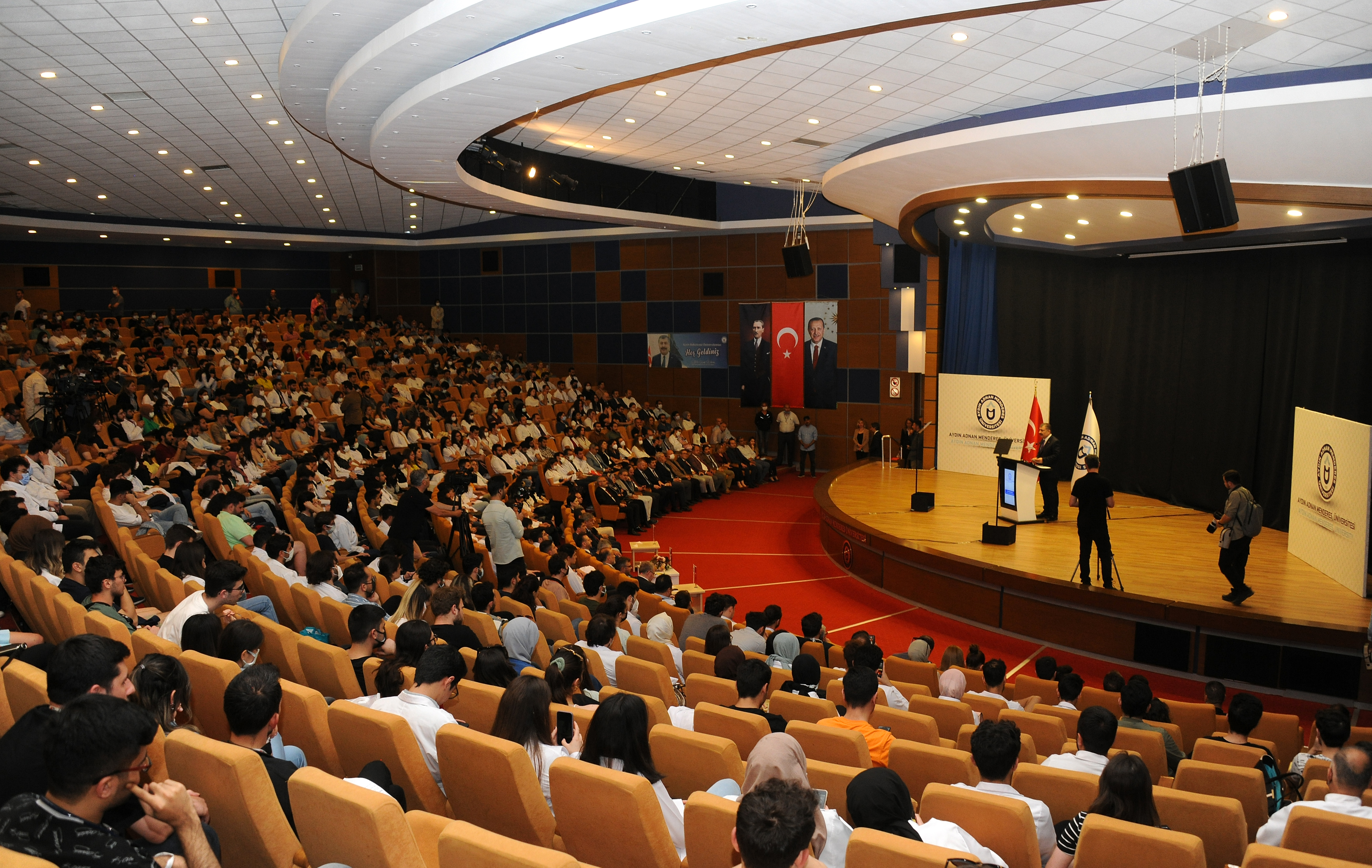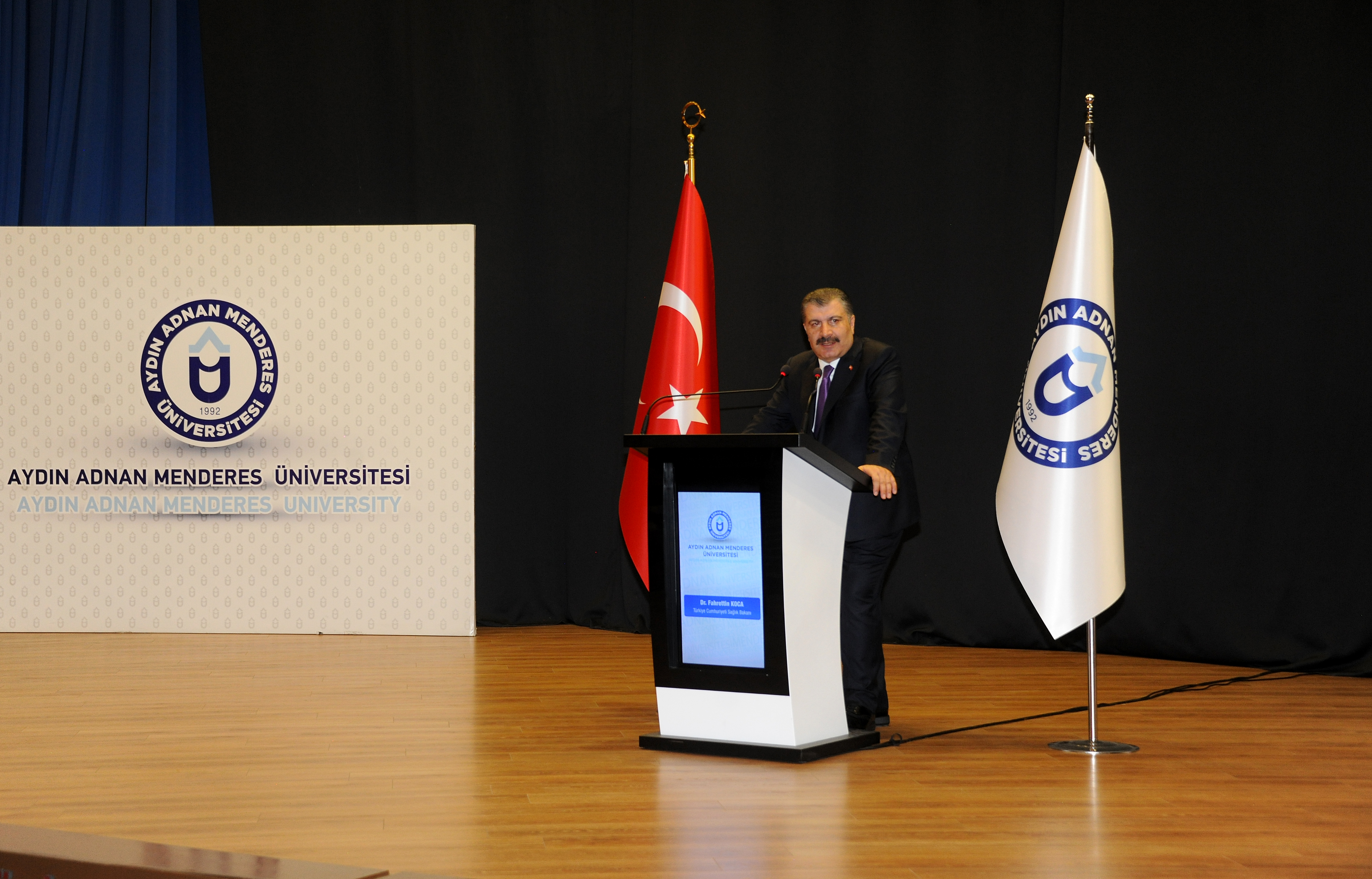 Saygı DuruÅŸu ve İstiklal Marşı ile baÅŸlayan programda açılış konuÅŸmasını yapan Üniversitemiz Rektörü Prof. Dr. Osman Selçuk Aldemir, “ADÜ’de SaÄŸlık Bakanımız Dr. Fahrettin Koca'yı ağırlamaktan büyük bir mutluluk duyuyoruz’’ dedi.