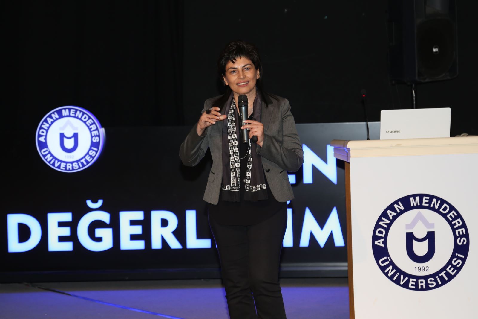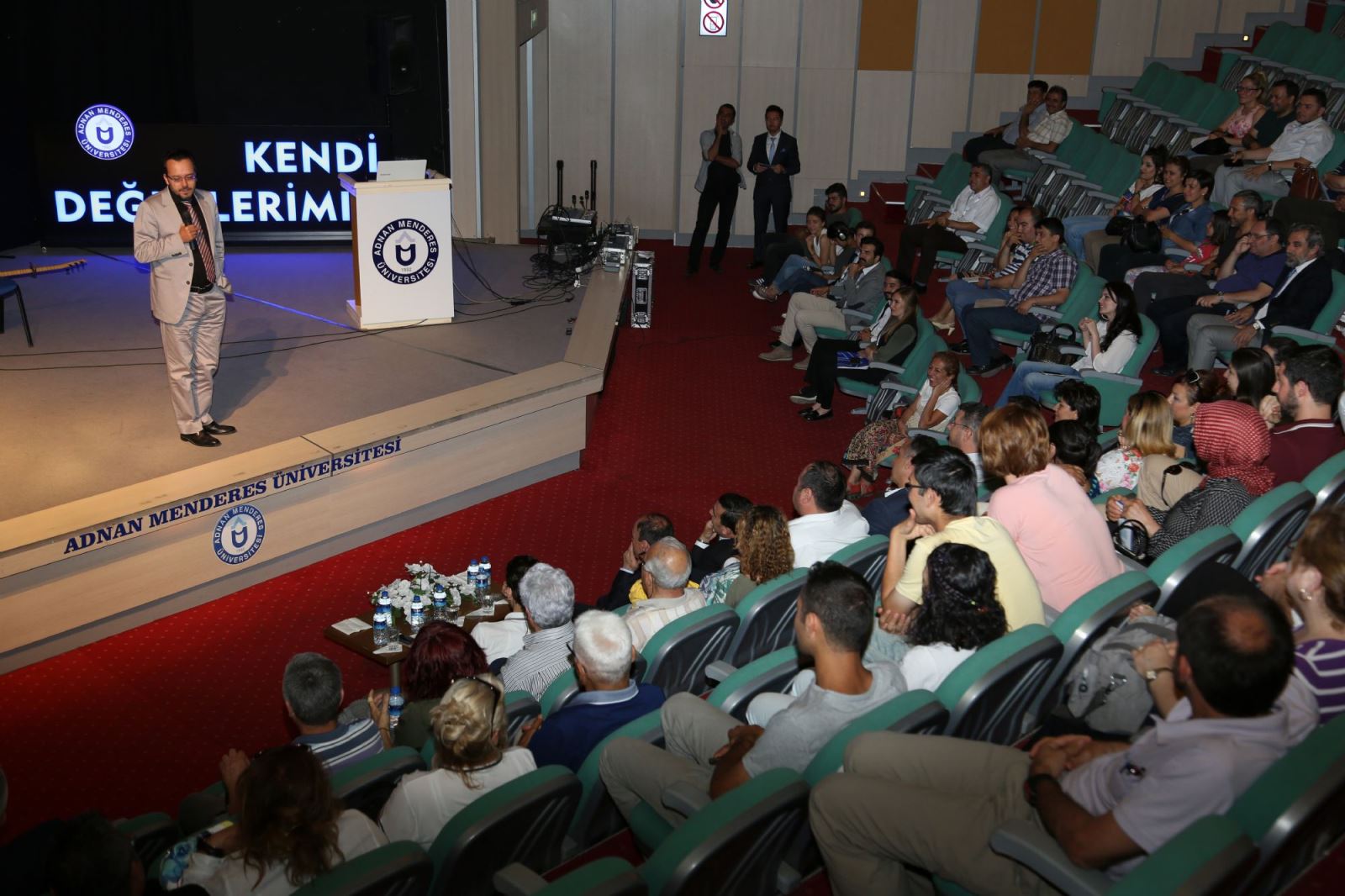 Üniversitemiz bünyesinde görev yapan ve her biri alanında ‘DeÄŸer’ olan öÄŸretim üyelerimizin akademik, idari personel ve öÄŸrencilerle buluÅŸup deneyimlerini paylaÅŸtığı “Kendi DeÄŸerlerimiz” adlı söyleÅŸinin beÅŸincisi, 1 Haziran 2016 tarihinde Atatürk Kongre Merkezi Miletos Salonu’nda gerçekleÅŸti. EÄŸitim Fakültesi Güzel Sanatlar EÄŸitimi Bölümü Müzik EÄŸitimi Anabilim Dalı öÄŸrencilerinin müzik dinletisinin ardından baÅŸlayan söyleÅŸiye Rektörümüz Prof. Dr. Cavit Bircan’ın yanı sıra Rektör Yardımcılarımız Prof. Dr. Recai Tunca ve Prof. Dr. Mustafa Ali Sarılı ile akademik ve idari personel katıldı.