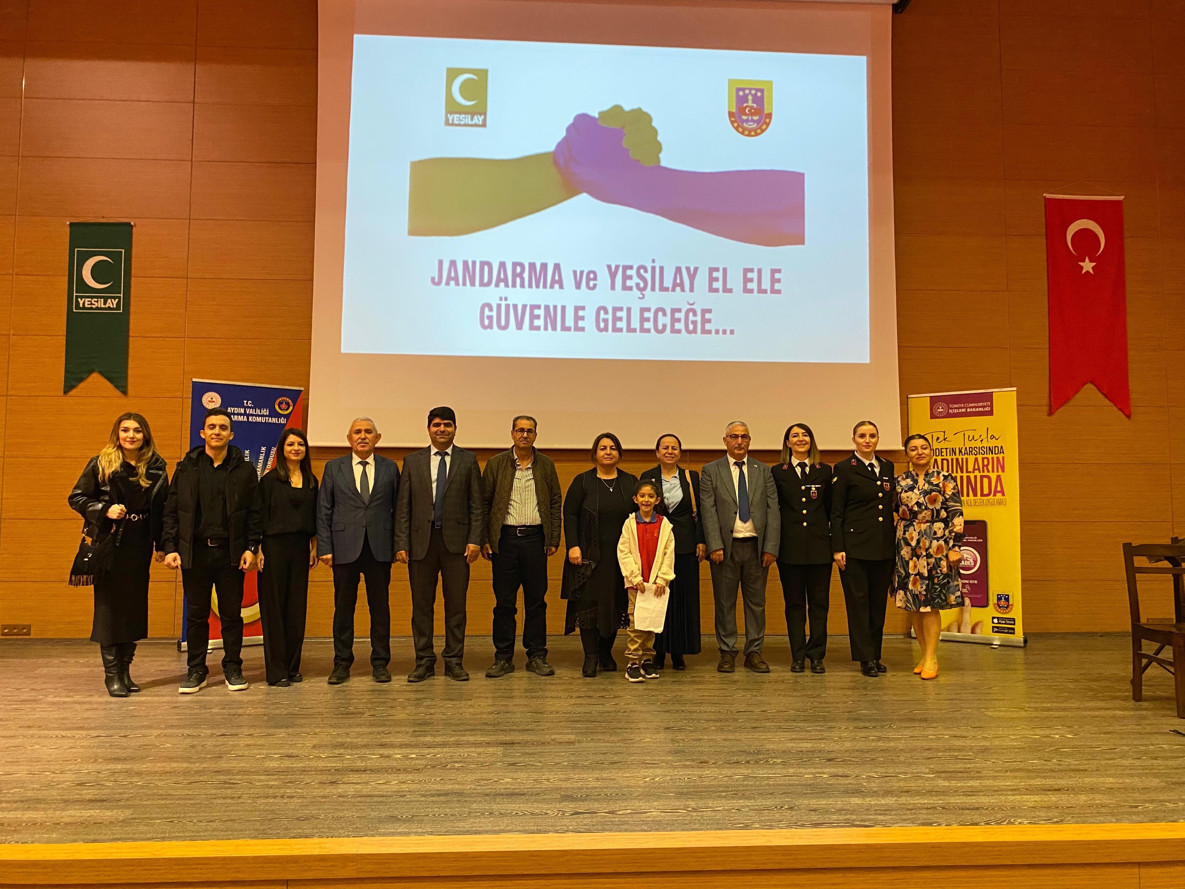 Aydın YeÅŸilay ve Aydın İl Jandarma Komutanlığı iÅŸ birliÄŸiyle düzenlenen “Åžiddetsiz ve Bağımsız Gelecek İçin El Ele” etkinliÄŸi, bugün İl MüftülüÄŸü Konferans Salonu’nda gerçekleÅŸtirildi. Programa İl Jandarma Komutanlığı AsayiÅŸ Åžube Müdürü Albay Serkan Gök, Aile ve Sosyal Hizmetler İl Müdürü Abdullah KömürcüoÄŸlu, İl Müftüsü Hasan GüneÅŸ, İl Millî EÄŸitim Müdür Yardımcısı Sabri Acar, Adnan Menderes Üniversitesi Tıp Fakültesi Dekanı ve YeÅŸilay Yönetim Kurulu Üyesi Prof. Dr. Yasemin Özkan, YeÅŸilay Yönetim Kurulu üyeleri, öÄŸretmenler, veliler ve çok sayıda öÄŸrenci katıldı.