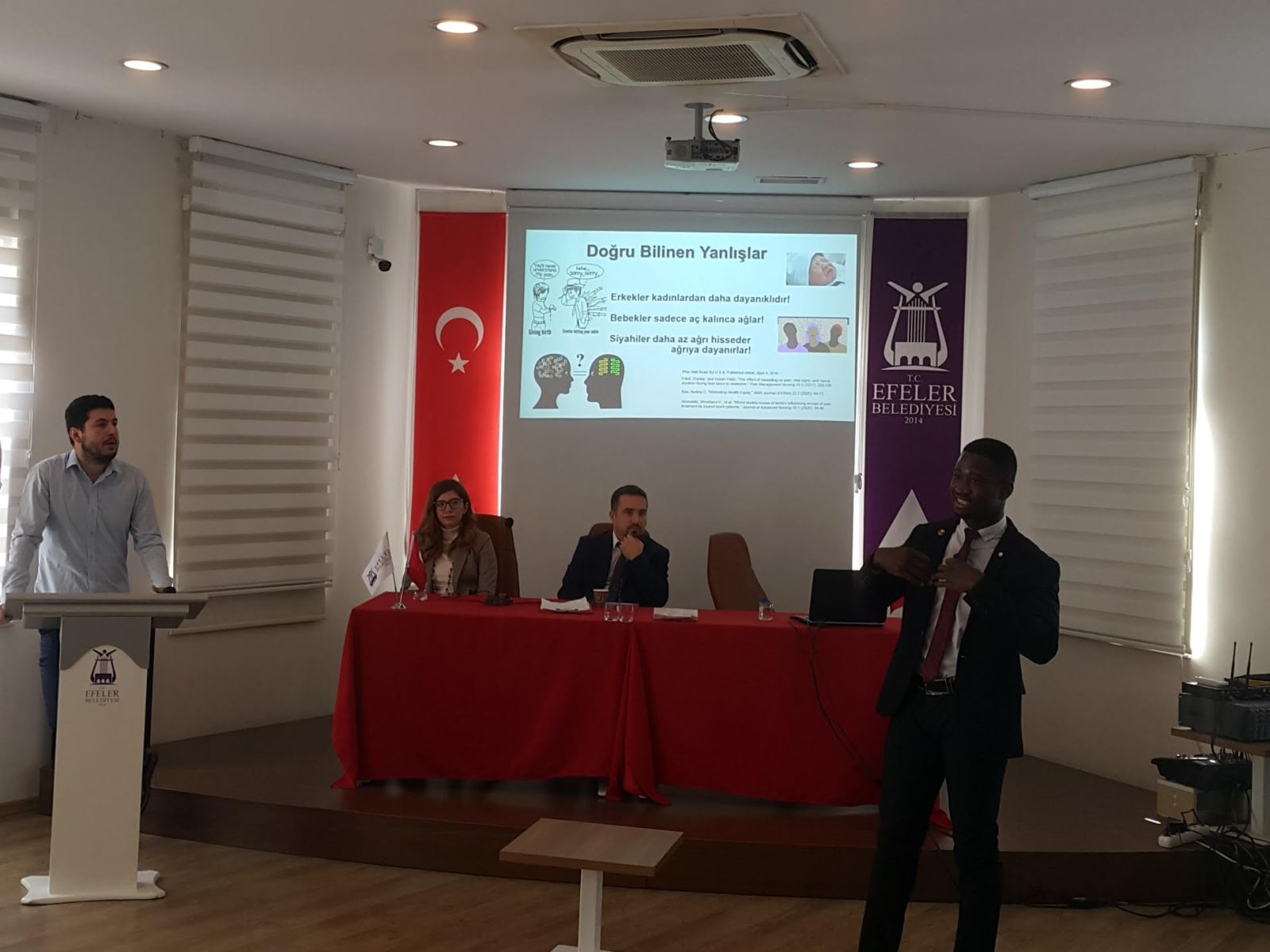Halk SaÄŸlığı Anabilim Dalı BaÅŸkanı Prof. Dr. Pınar Okyay ve Aydın Efeler Belediyesi SaÄŸlık İşleri Müdürü Dr. Eralp Atay koordinatörlüÄŸünde Halk SaÄŸlığı Anabilim Dalı AraÅŸtırma Görevlileri Dr. Mehmet OÄŸuz Türkmen, Dr. İsmail Çevik, Dr. Ezgi Çamlık sorumluluÄŸunda Tıp Fakültesi 6.sınıf öÄŸrenci grupları sunumları ile bilgi verdiler. EÄŸitimde; “AÄŸrı nedir?, AÄŸrı çeÅŸitleri nelerdir?, AÄŸrı neden önemlidir?, AÄŸrı ile iliÅŸkili hastalıklar nelerdir?, AÄŸrı ile ilgili acil durumlar nelerdir?, AÄŸrı tedavisinde ergonominin yeri ve önemi?, AÄŸrı ile ilgili koruyucu uygulamalar nelerdir?, AÄŸrıda akılcı ilaç kullanımın önemi nedir?” konuları dinleyicilere aktarılarak, ergonomi ile ilgili koruyucu davranışları içeren uygulamalar gerçekleÅŸtirildi.