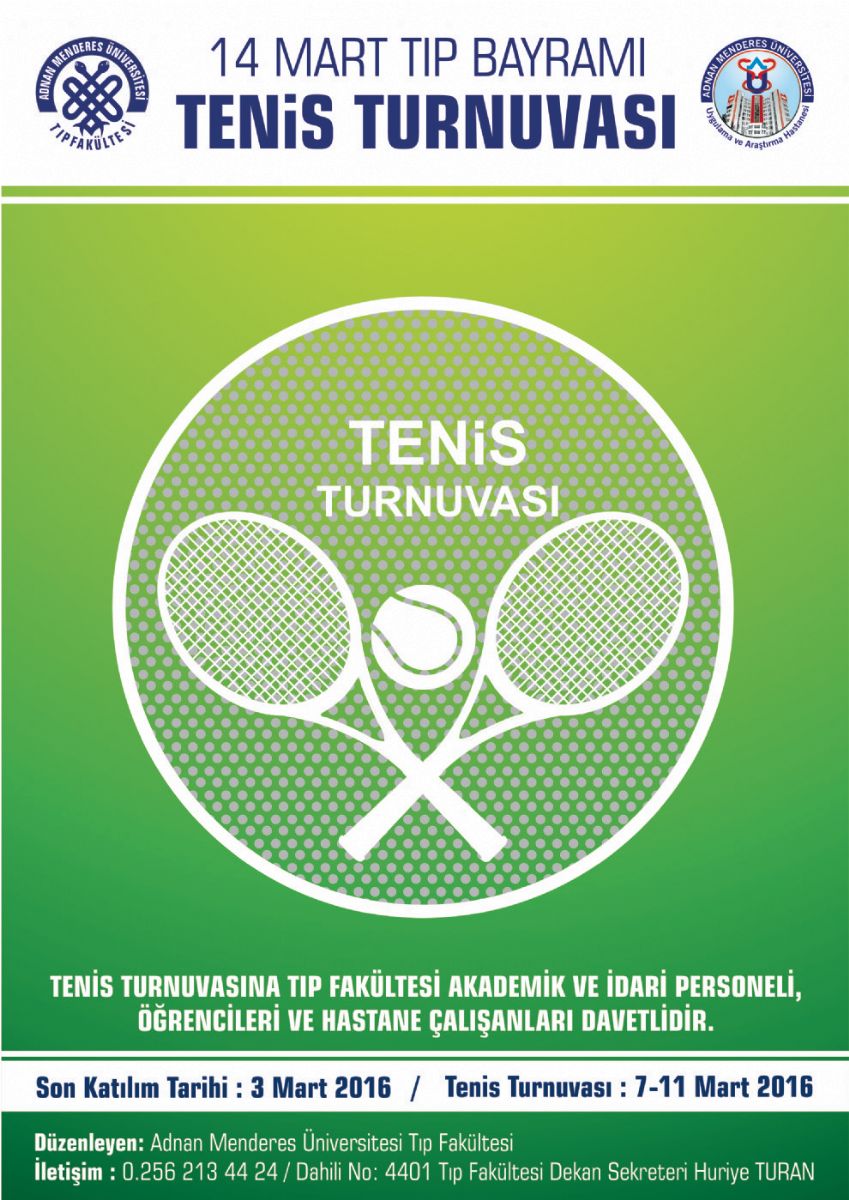 Üniversitemiz Tıp Fakültesi 14 Mart Tıp Bayramı etkinlikleri kapsamında Tenis Turnuvası düzenleyecektir.