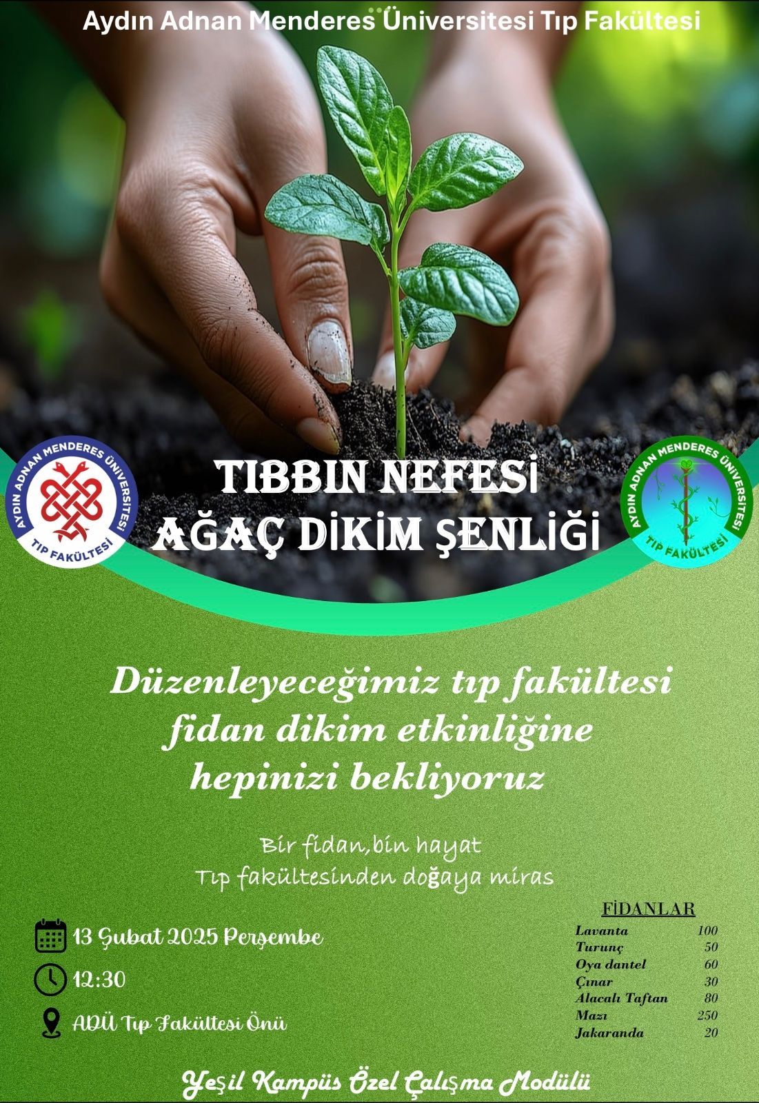 Tıp Fakültesi öÄŸretim üyeleri ve öÄŸrencileri olarak, fakültemizin bahçesinde düzenleyeceÄŸimiz Fidan Dikim EtkinliÄŸinde sizleri de aramızda görmekten mutluluk duyarız. TopraÄŸa dokunmak, doÄŸayla buluÅŸmak ve fakültemize kalıcı bir iz bırakmak için siz de etkinliÄŸimize katılın.