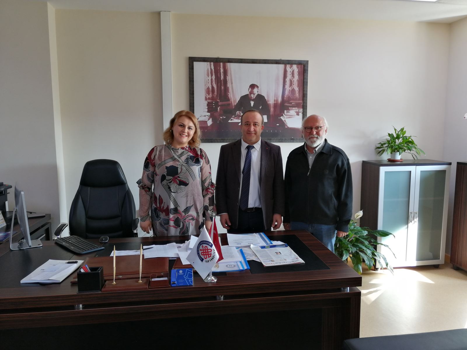 Tıp Fakültesi öğrencilerimizin araştırma geliştirme faaliyetlerini arttırmak ve çeşitli projelerde yer alarak kendini geliştirme ve bilimsel alt yapılarını güçlendirme konusunda çeşitli kamu kurum ve kuruluşları, araştırma merkezleri ile işbirliği içinde olma politikamız için önemli adımlar atılmıştır. Bu bağlamda öncelikle araştırma geliştirme faaliyetlerinin gerçekleştiği ve bilimsel alanda önemli çalışmaların yapıldığı Üniversitemiz araştırma merkezlerinden Rekombinant DNA ve Rekombinant Protein Uygulama ve Araştırma Merkezi (ADÜ-REDPROM) ve Bilim Teknoloji Araştırma ve Uygulama Merkezi (ADÜ-BİLTEM) ile işbirliği protokolü imzalanmıştır. ADÜ-REDPROM araştırma merkez müdürü Prof.Dr. Bülent BOZDOĞAN, ADÜ-BİLTEM araştırma merkez müdürü Doç.Dr. Özge ÇEVİK ve Tıp Fakültesi Dekanı Prof.Dr. Erdem Ali ÖZKISACIK ile 24.02.2020 tarihinde imzalanan protokolle Tıp Fakültesi mezuniyet öncesi ve sonrası öğrencilerimiz, öğretim elemanlarımız ve öğretim üyelerimiz merkezlerin alt yapı olanaklarını kullanarak araştırma geliştirme faaliyetlerini kolaylıkla yürütebileceklerdir. Bu iş birliği ile Tıp Fakültesi öğrencilerimizin çeşitli ulusal ve uluslararası kuruluşlara proje destekleri için başvurularının artmasını hedeflemekteyiz.