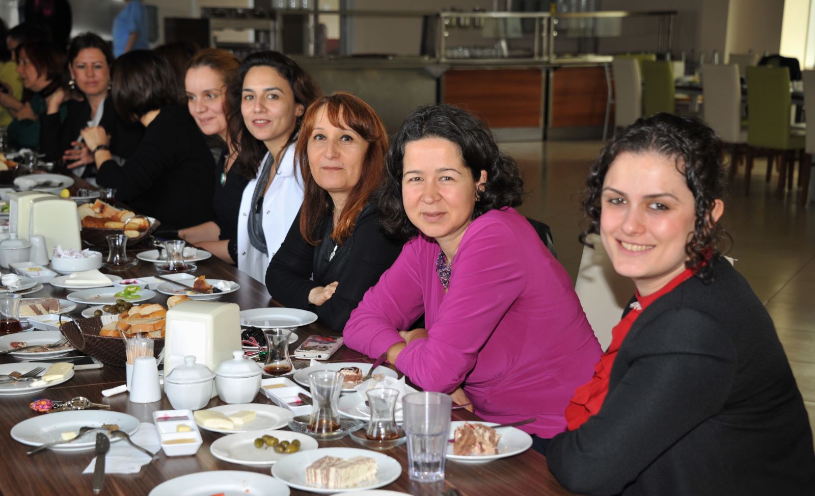 Samimi bir ortamda gerçekleşen kahvaltıda Kulak Burun Boğaz Hastalıkları Anabilim Dalı Öğretim Üyesi Yrd. Doç. Dr. Aylin Eryılmaz’ın doğum günü olması sebebiyle pasta kesimi gerçekleşti. Yoğun katılım ile gerçekleşen etkinlikte kadınların sorunları ve çözümleri konusunda bilgi alışverişi yapıldı.
