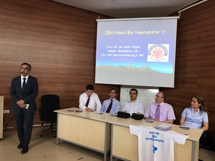 Gastroenteroloji Bilim Dalı baÅŸkanı Prof. Dr. M.Hadi YaÅŸa'nın açılış konuÅŸmasını yapıp hastalığın genel özelliklerini vurguladığı sempozyum, yaklaşık 4.5 saat sürdü. ADÜ Tıp Fakültesi Gastroenteroloji Bilim Dalı öÄŸretim üyelerimiz Prof. Dr. M. Hadi YaÅŸa, Prof.Dr. Vahit Yükselen, Yrd.Doç.Dr.Adil CoÅŸkun ve Yrd.Doç Dr Altay Kandemir ile ADÜ Genel Cerrahi ABD öÄŸr üyesi Yrd. Doç Dr. Murat Yılmaz ve Katip Çelebi Üniversitesi ÖÄŸr gör. Berna Nilgün İBH hastalığı hakkında hastaları bilgilendirdiler. Toplantı hastaların sorduÄŸu soruları, uzmanların cevaplandırması ile sona erdi.