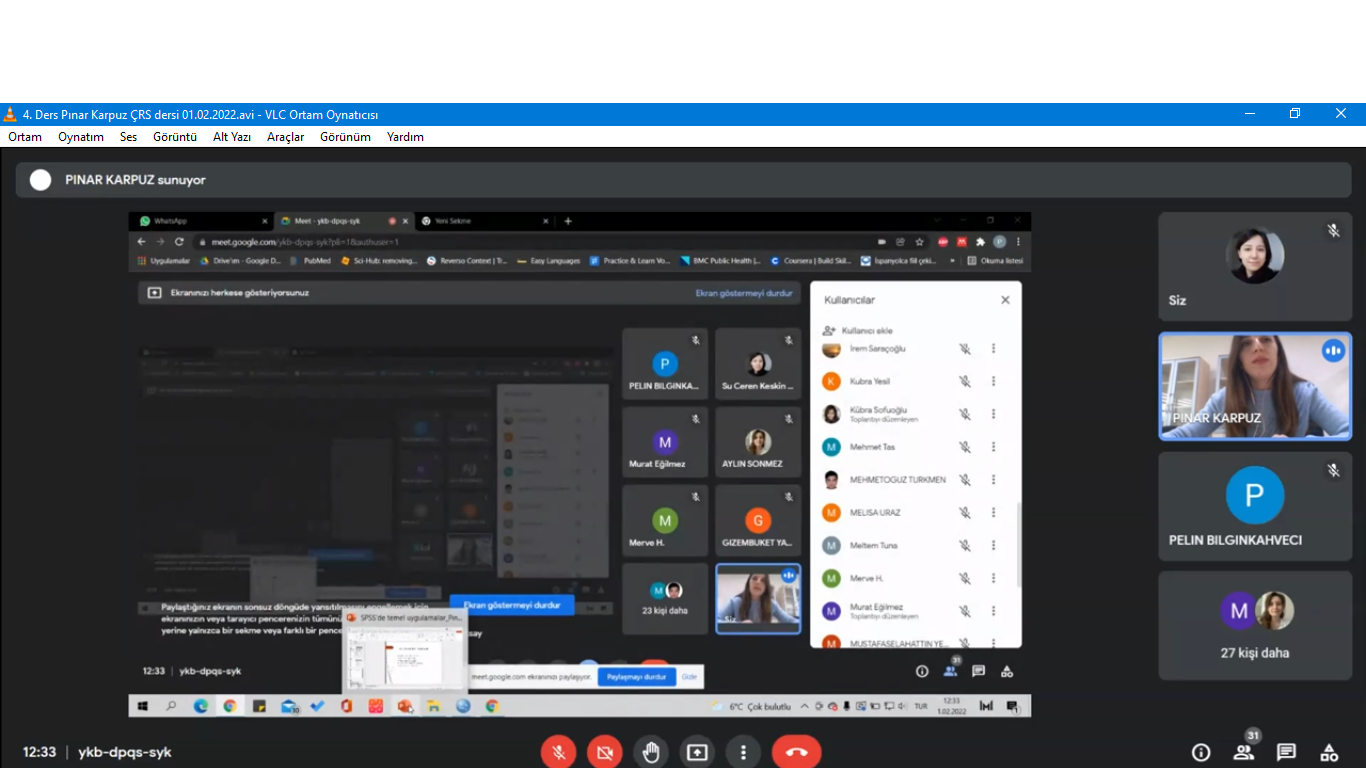 Fakültemiz Halk Sağlığı Anabilim Dalı tarafından Çocuk Ergen ve Ruh Sağlığı Hastalıkları Anabilim Dalı, Kulak Burun Boğaz Hastalıkları Anabilim Dalı, Ruh Sağlığı ve Hastalıkları Anabilim Dalı araştırma görevlilerine ilgili bölümlerden gelen talep üzerine 04.01.2022-24.05.2022 tarihleri arasında '' Temel İstatistiksel Yöntemler Eğitimi'' verilmiştir. Eğitim içeriğinin, kapsamının belirlenmesi ve eğitim materyallerinin hazırlığı Halk Sağlığı Anabilim Dalı öğretim üyelerince yürütülmüş, eğitimin kapsamı ise Halk Sağlığı Anabilim Dalı araştırma görevlileri tarafından gerçekleştirilmiştir.