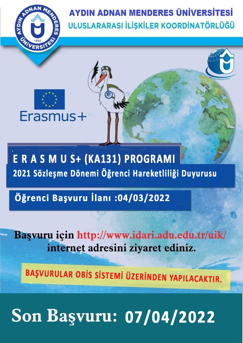 2021 Sözleşme Dönemi Erasmus+ Öğrenci Hareketliliği Başvuru Duyurusu