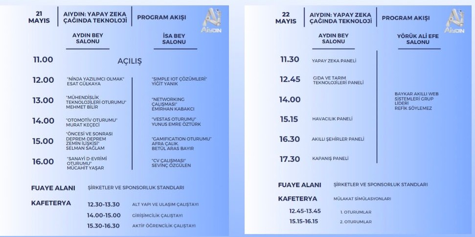 Üniversitemizde 21-22 Mayıs 2024 Tarihlerinde, Atatürk Kongre Merkezi Yörük Ali Efe Salonunda gerçekleşecek olan AIYDIN: Yapay Zeka Çağında Teknoloji Zirvesi yapılacaktır.