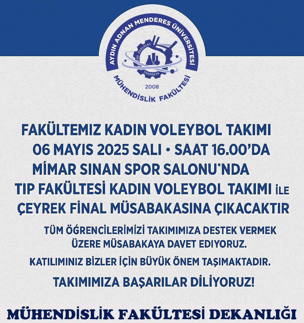 Tüm öğrencilerimizi takımımıza destek vermek üzere müsabakaya davet ediyoruz.