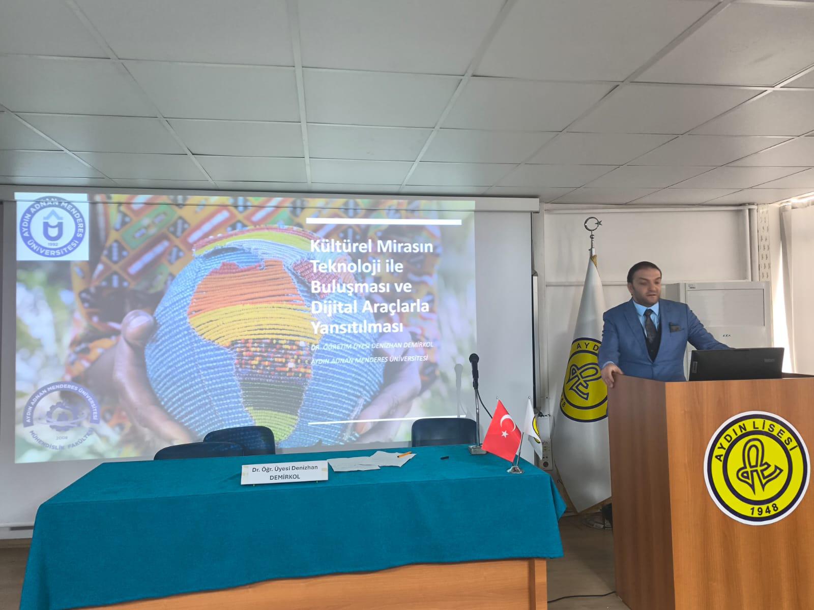 Aydın İl Milli EÄŸitim MüdürlüÄŸü tarafından gerçekleÅŸtirilen “Liselerde Bilim Uygulamaları Projesi” kapsamında, Fakültemiz Bilgisayar MühendisliÄŸi Bölümünden Dr. ÖÄŸr. Üyesi Denizhan DEMİRKOL tarafından “Kültürel Mirasın Teknoloji İle BuluÅŸması” konulu konferans verildi. Dr. ÖÄŸr. Üyesi Mahmut SİNECEN tarafından “Siber Güvenlik ve Dijital Güvenlik” konulu semineri ise, Nazilli Fen Lisesi öÄŸrencileri tarafından yoÄŸun ilgi gördü. Konferans da İl Milli EÄŸitim MüdürlüÄŸü OrtaöÄŸretim Åžube Müdürümüz Sayın Mehmet ASLAN’ da yer aldı. Fakültemiz Bilgisayar MühendisliÄŸi Bölümü hem özel sektörde hem akademide hem de liselerle ilgili ortak çalışmalarda öncü çalışmalarını yürütmeye devam etmektedir.