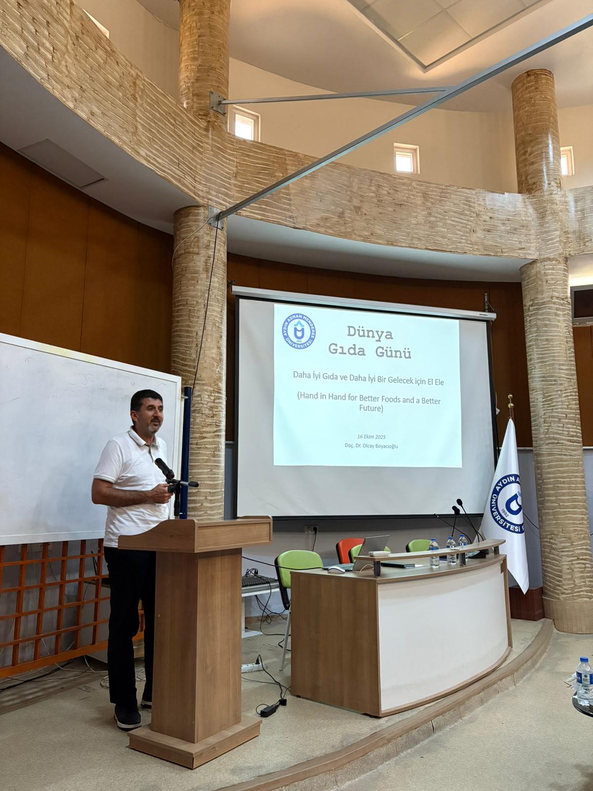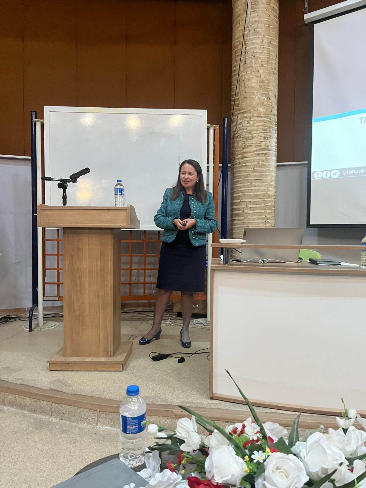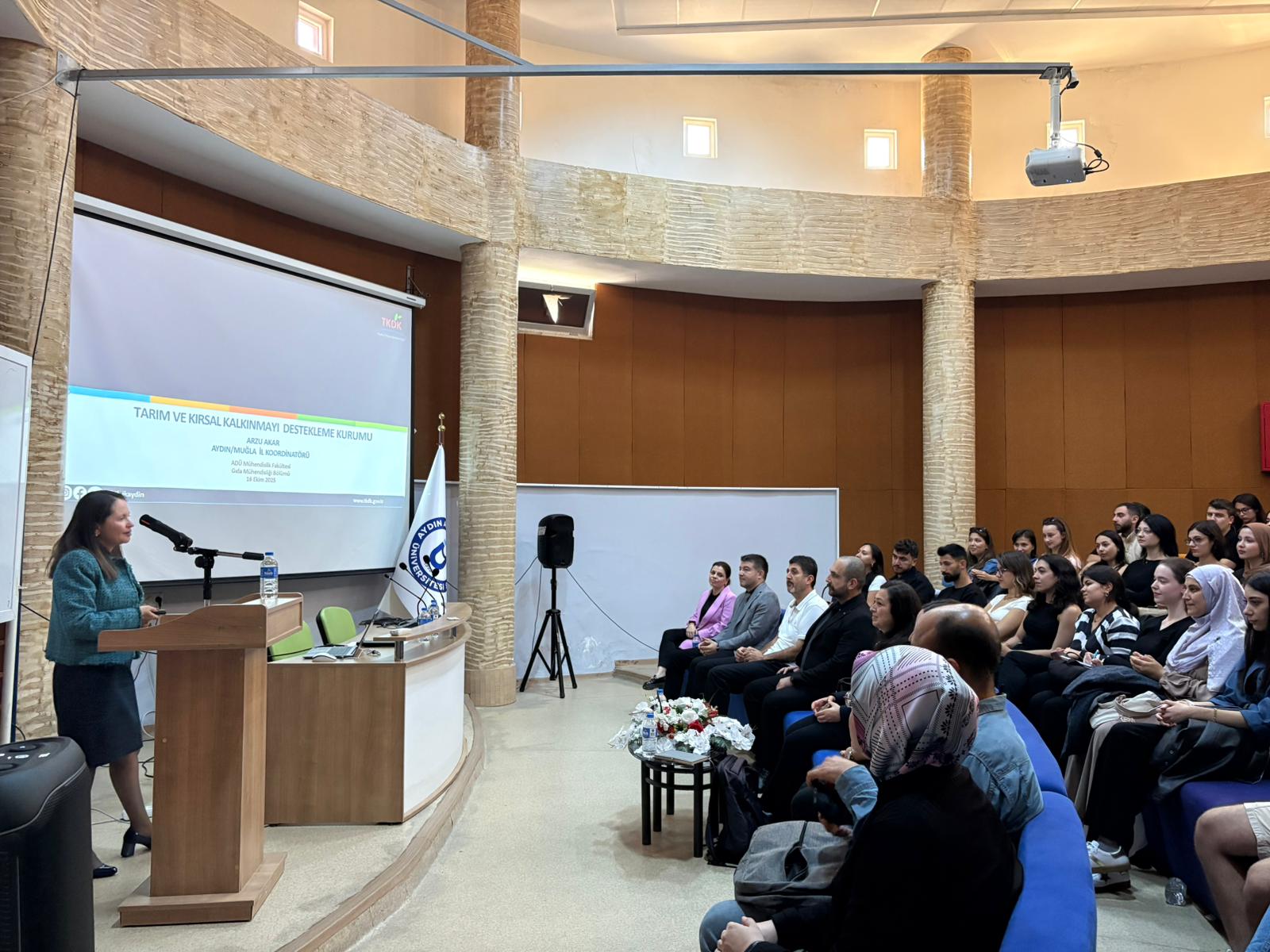 Aydın İli Stratejik Planlama ve Yenilik Merkezi’nde (AİSYEM) gerçekleştirilen etkinliğe; Tarım ve Kırsal Kalkınmayı Destekleme Kurumu (TKDK) Aydın İl Koordinatörü Arzu Akar, Gıda Mühendisleri Odası Aydın İl Temsilcisi Nilgün Olan, Üniversitemiz Mühendislik Fakültesi Gıda Mühendisliği Bölümü Öğretim Üyesi Doç. Dr. Olcay Boyacıoğlu ve Tıp Fakültesi Temel Tıp Bilimleri Bölümü Dr. Öğr. Üyesi Ferhat Şirinyıldız konuşmacı olarak katıldı.