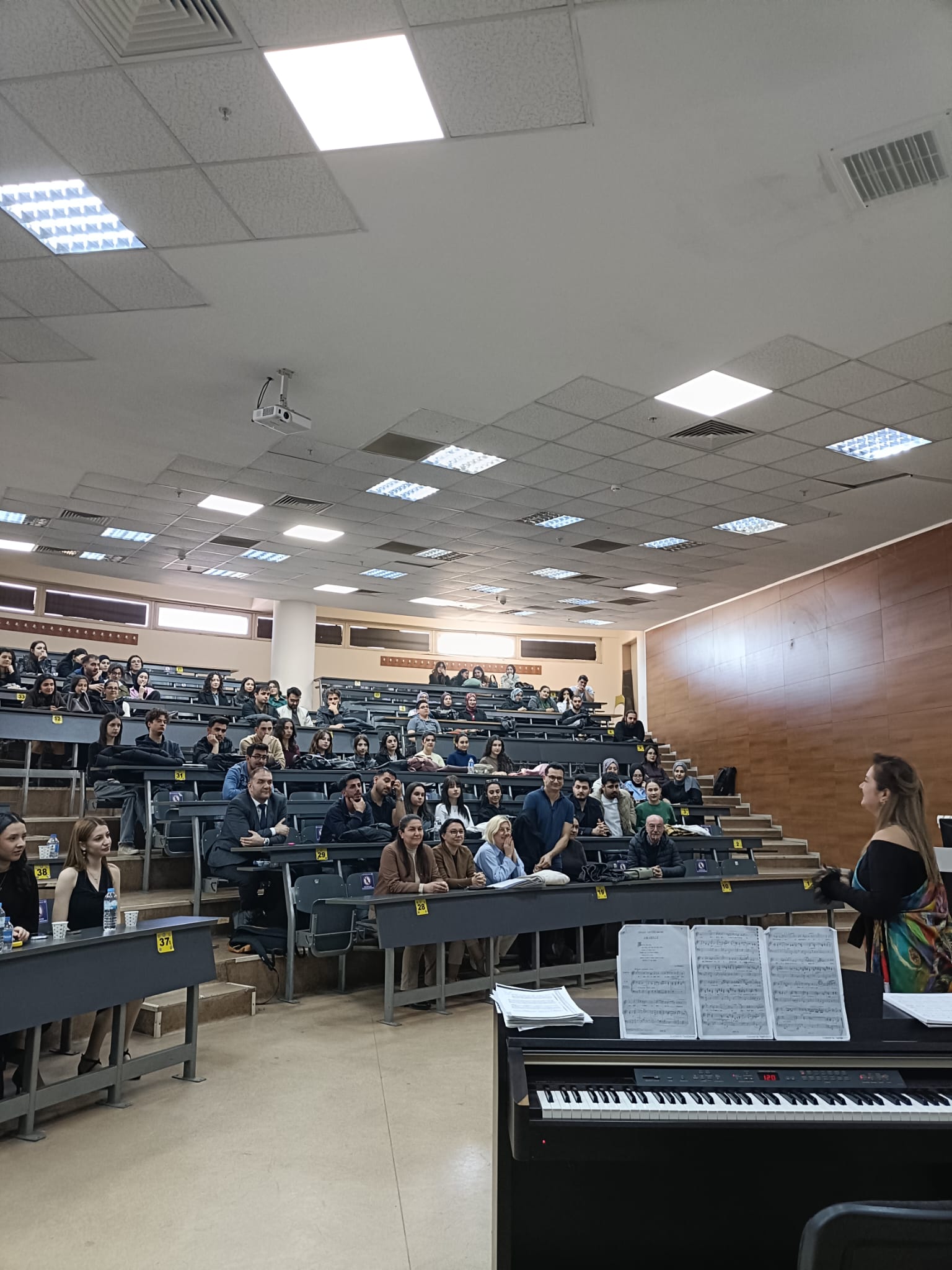 ÖÄŸrencilerimizin yoÄŸun ilgi gösterdiÄŸi etkinlikte solistler Tanzel Sarı, YaÄŸmur Dikduran, İrem ÜzeyiroÄŸlu, Esmer Duran, Buse UÄŸuz, Ceren Sude Kösem ve Nilay Åženel sahne alarak birbirinden etkileyici performanslar sergiledi. Programda solistlere piyanoda Ada Kabadayı eÅŸlik etti. Dinleti boyunca seslendirilen eserler izleyiciler tarafından büyük beÄŸeni topladı.