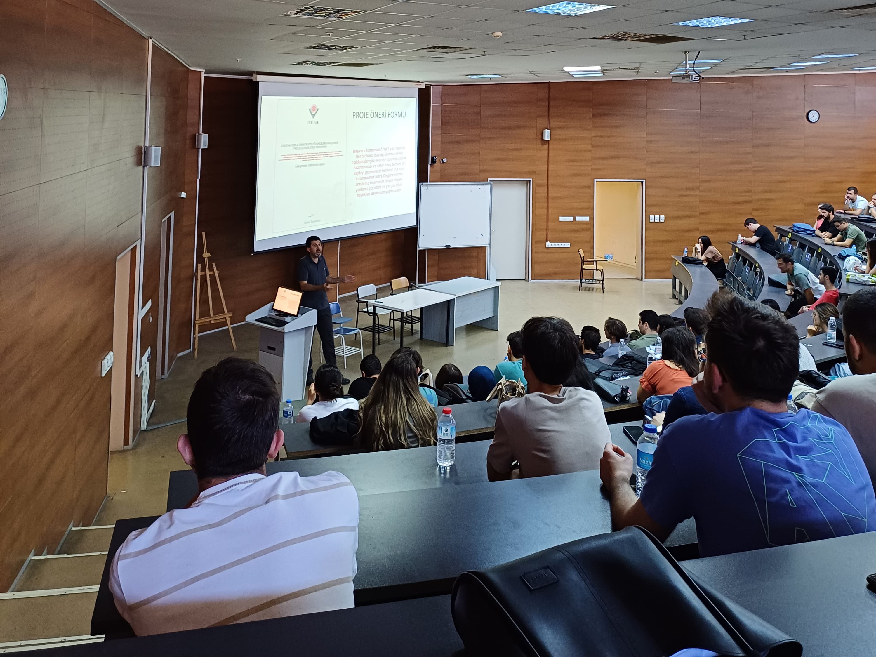 Üniversitemiz Mühendislik Fakültesi 3. ve 4. sınıf öğrencilerine “2209-A-Üniversite Öğrencileri Araştırma Projeleri Destekleme Programı ve 2209-B-Üniversite Öğrencileri Sanayiye Yönelik Araştırma Projeleri Desteği Programı” için Gıda Mühendisliği Bölümü öğretim üyesi Doç. Dr. Olcay BOYACIOĞLU tarafından 4 Ekim 2024 tarihinde proje yazma eğitimi verildi. Program, öğrencilerden gelen soruların cevaplandırılmasının ardından sona erdi.