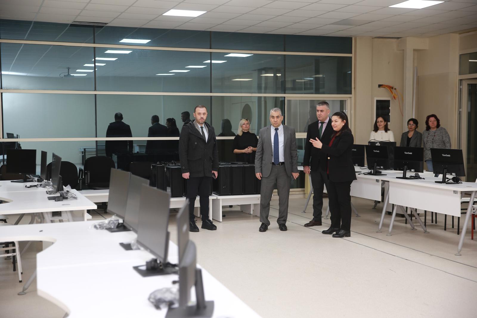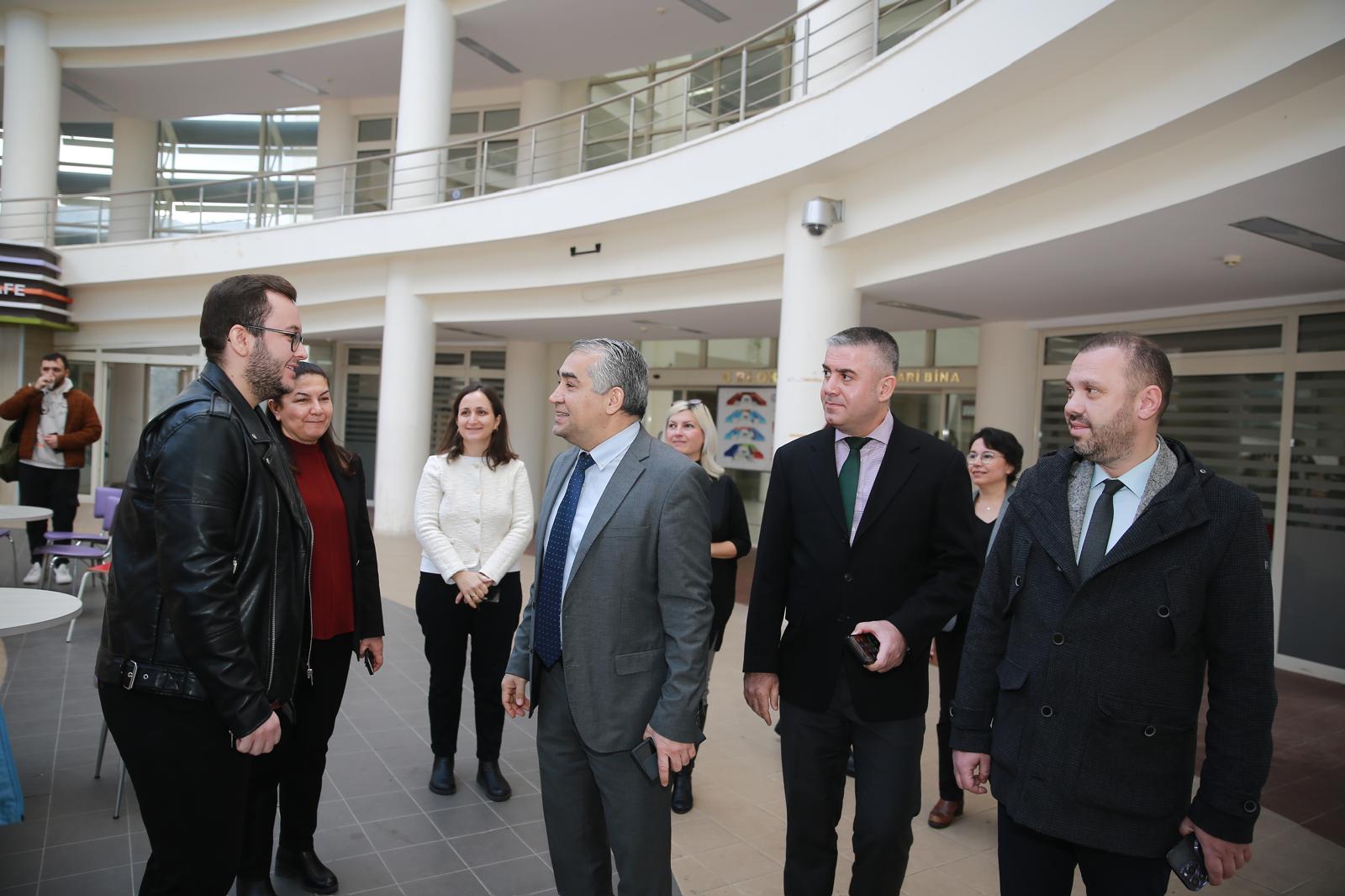 EÄŸitimlerin ardından, Üniversitemiz Rektörü Prof. Dr. Bülent Kent, Fakülte Dekan V. Prof. Dr. Hilal Åžahin Nadeem’i makamında ziyaret ederek, fakültede yürütülen çalışmalar ve yapılması planlanan projeler hakkında bilgi aldı. Fakülte binasını ve derslikleri gezen Üniversitemiz Rektörü Prof. Dr. Bülent Kent, akademik-idari personel ve öÄŸrencilerle bir araya gelerek istiÅŸarelerde bulundu.