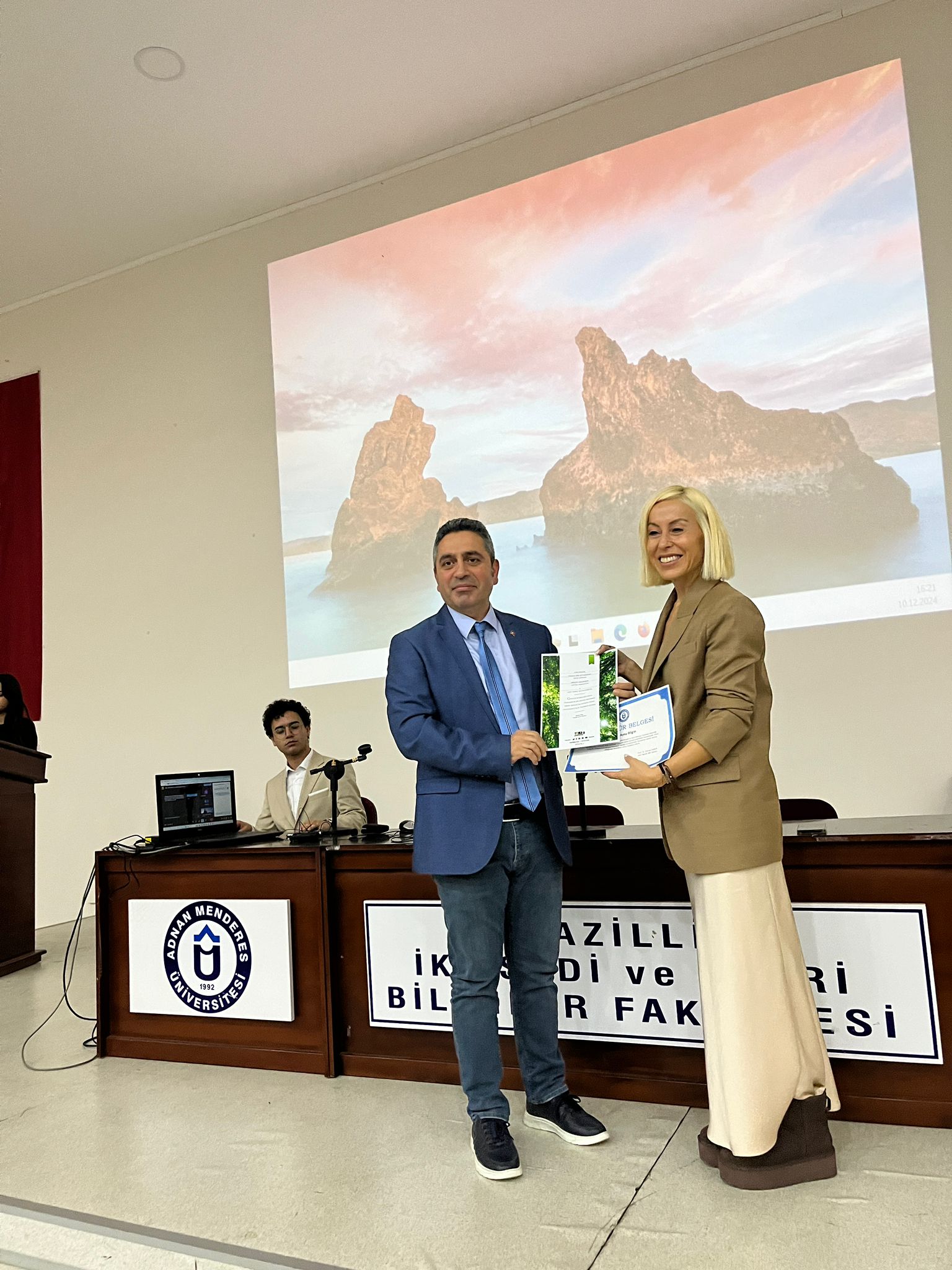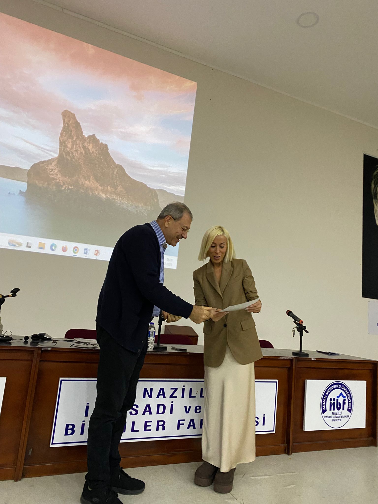 "Kariyer etkinlikleri kapsamında 10 Aralık Salı günü Nazilli İktisadi ve İdari Bilimler Fakültesi İsabeyli Yerleşkesi konferans salonunda "Uluslararası Ticaret Topluluğu" koordinasyonunda, kariyer uzmanı ve eğitmen Aysu BİLGİN tarafından "Etkili Linkedin Kullanımı ve Kariyer Yönetimi" başlıklı bir eğitim gerçekleştirilmiştir. Öğrencilerden çok yoğun ilgi gören etkinlikte, eşzamanlı çevrimiçi olarak üniversitemizdeki diğer fakültelerden öğrencilerin de katılımı sağlanmıştır. Etkinlik sonrasında Nazilli İİBF Dekanı Prof. Dr. Osman PEKER ve Uluslararası Ticaret ve Finansman Bölüm Başkanı Doç. Dr. Metin DAM, eğitmen Aysu BİLGİN'e katılımları için teşekkür etmiş, katılım teşekkür belgesini ve TEMA vakfı bağış belgesini takdim etmişlerdir."