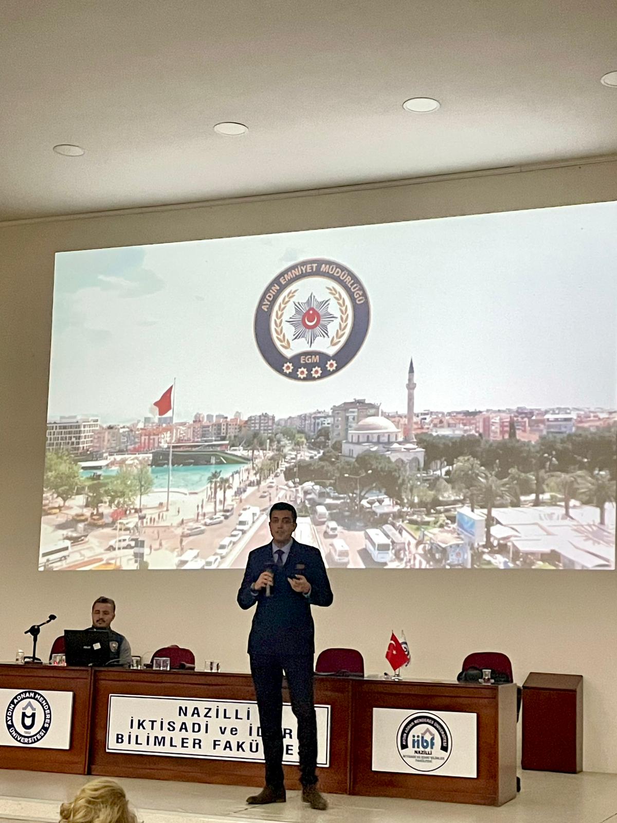 Aydın İl Emniyet Müdürlüğü Siber Suçlarla Mücadele Şube Müdürlüğü eğitmeni Uğur Bulut tarafından verilen seminerde; siber dolandırıcılık, yasa dışı bahis, kara para aklama, öğrencilerin banka hesapları ve kişisel bilgilerinin suç faaliyetlerinde kullanılması gibi konular detaylı örneklerle ele alındı. Etkinlik kapsamında ayrıca Cumhuriyet Savcısı Halil Ateş, bu tür suçların hukuki sonuçları ve cezai yaptırımları hakkında konuşma gerçekleştirdi.