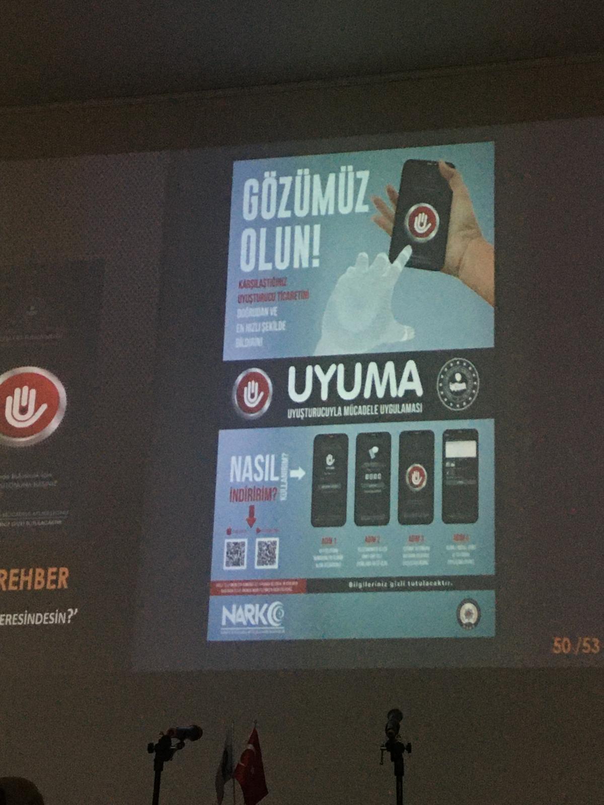 Emniyet Genel Müdürlüğü tarafından yürütülen NarkoRehber projesi kapsamında gerçekleştirilen eğitimde, uyuşturucu ile mücadelede erken farkındalık, bağımlılıkla mücadele yöntemleri ve yasal süreçler hakkında bilgiler verildi. Eğitim sırasında, uyuşturucu madde kullanımının belirtileri, mücadele yöntemleri ve Uyuşturucuyla Mücadele Uygulaması (UYUMA) üzerinden ihbarda bulunma süreçleri detaylı olarak ele alındı.
