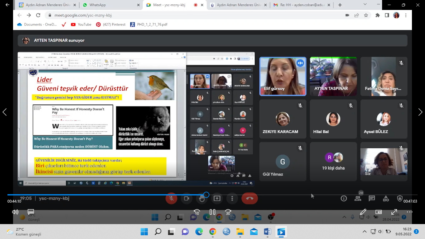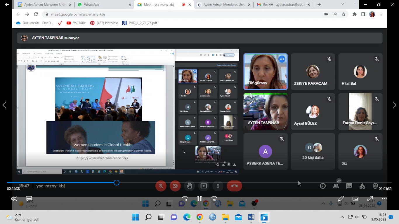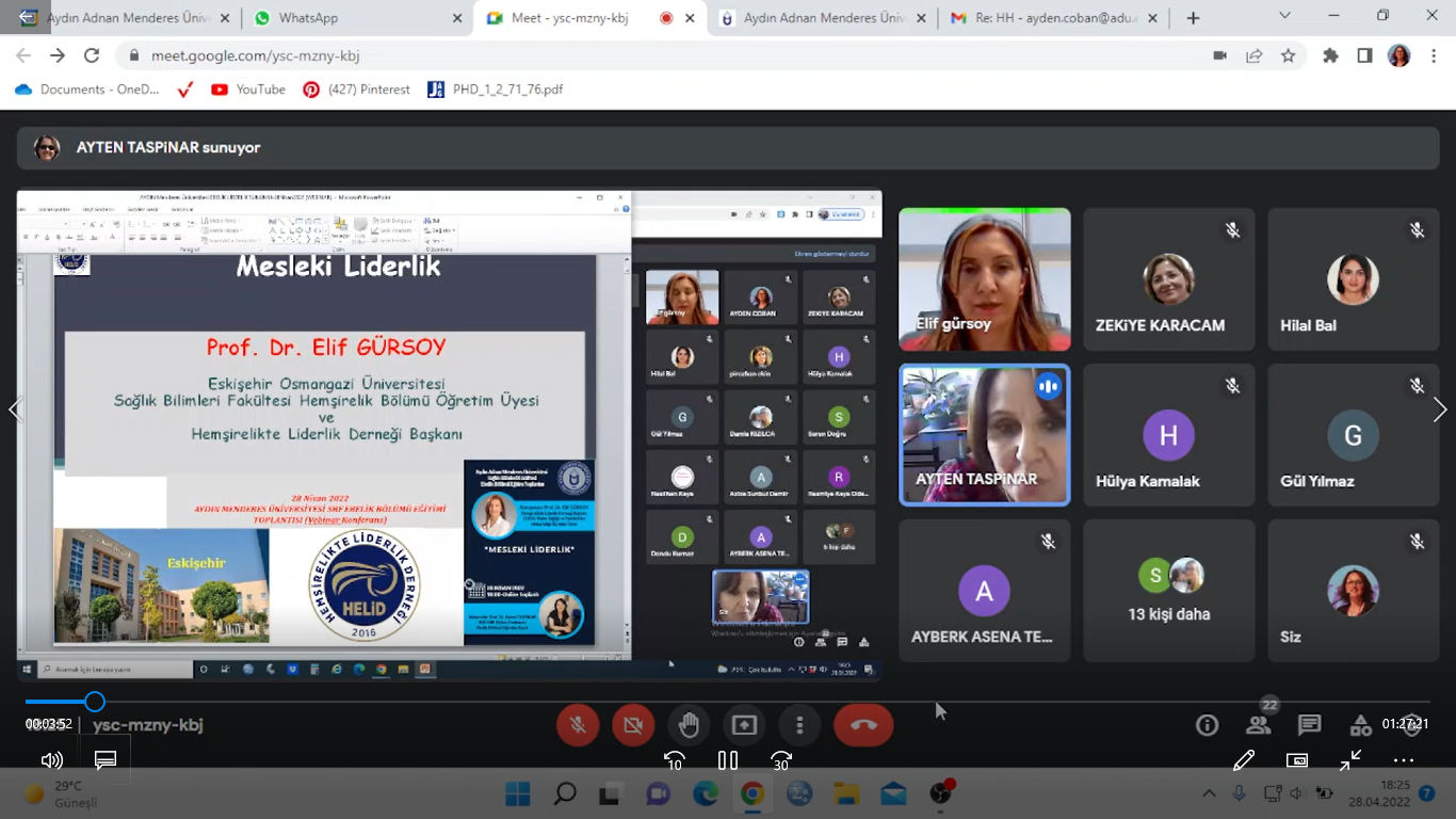 Üniversitemiz Sağlık Bilimleri Fakültesi Ebelik Bölümü olarak “Ebeler Günü Etkinlikleri” kapsamında düzenlediğimiz “Mesleki Liderlik” online paneli 28 Nisan 2022 tarihinde Google meet üzerinden gerçekleştirildi.