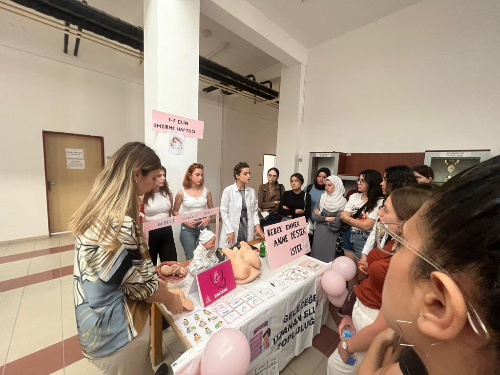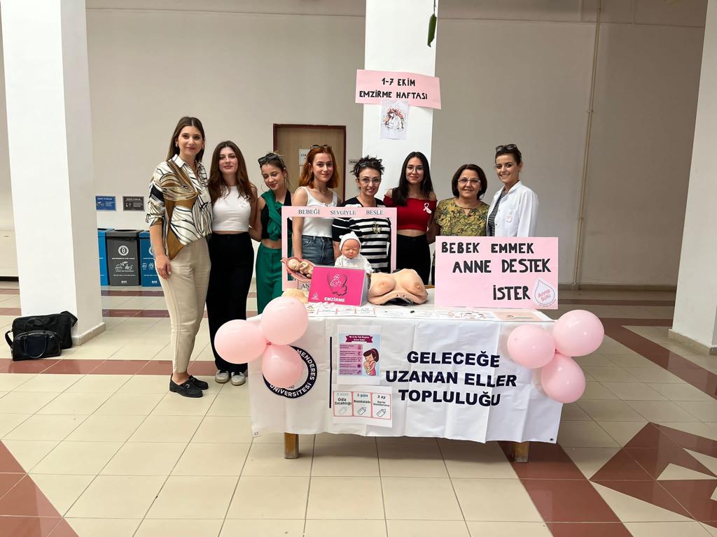 SaÄŸlık Bilimleri Fakültesi Ebelik Bölümü öÄŸrencileri önderliÄŸinde kurulan GeleceÄŸe Uzanan Eller TopluluÄŸumuz tarafından 1-7 Ekim Emzirme Haftası dolayısıyla SaÄŸlık Bilimleri Fakültesinde farkındalık etkinliÄŸi gerçekleÅŸtirildi. Anne sütüyle beslemenin tüm dünyada yaygınlaÅŸması ve önemi konusunda farkındalık saÄŸlanması amacıyla her yıl 1-7 Ekim tarihlerinde Dünya Emzirme Haftası olarak kutlanmaktadır. Bu nedenle Fakültemiz binasında düzenlenen etkinlikte, stant açılarak SaÄŸlık Bilimleri Fakültesi öÄŸrencilerine ve çalışanlarına emzirmenin bebeÄŸe ve anneye faydalarıyla birlikte anne sütünün yararı konusunda bilgi verildi. Standı Fakültemiz Dekanı Prof. Dr. Aslıhan BÜYÜKÖZTÜRK KARUL ve Dekan Yardımcımız Prof. Dr. Ayten TAÅžPINAR da ziyaret etti. Standa gelen ziyaretçilere anne sütü ile beslenmeyi desteklemek ve yaygınlaÅŸtırmak amacı ile anne sütü ile beslenmenin çocuÄŸun saÄŸlığı ve geliÅŸimi için temel oluÅŸturduÄŸu, bebeklerin doÄŸumdan itibaren ilk altı ay boyunca sadece anne sütüyle beslenmeleri gerektiÄŸi, 6.aydan sonra uygun tamamlayıcı besinler baÅŸlanarak emzirmenin en az 2 yaÅŸ ve ötesine kadar sürdürülmesinin tüm dünya kuruluÅŸları tarafından önerildiÄŸi vurgulandı.