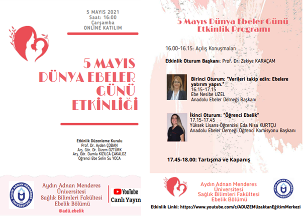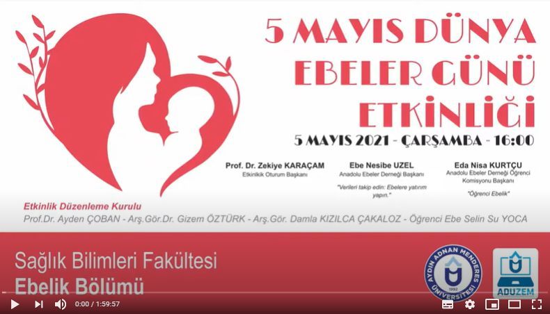 Aydın Adnan Menderes Üniversitesi SaÄŸlık Bilimleri Fakültesi Ebelik Bölümü tarafından “skype” üzerinden yapılmış olan online etkinliÄŸimize iliÅŸkin bilgiler aÅŸağıda yer almaktadır. İlgili etkinlik ADÜZEM Uzaktan EÄŸitim Merkezi Youtube kanalında https://www.youtube.com/watch?v=B7AurkkNv7I uzantısı ile kayıt edilmiÅŸtir.